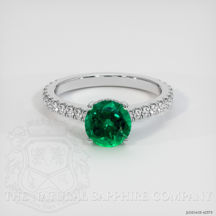 The Natural Emerald Company proudly presents an exquisite creation featuring a 1.20 carat round shape green emerald, renowned for its breathtaking brilliance and elegance. The gemstone, with precise dimensions of 6.98 x 6.91 x 4.83 mm, exhibits a mixed brilliant cut designed to maximize light reflection, enhancing its vivid color saturation. Our artisans have expertly executed this cut, ensuring that each facet interacts perfectly with light, creating an enchanting dance of luminosity that captivates the observer. This gemstone, originating from Zambia, possesses a clarity grade of very slightly included when evaluated at eye level, offering a clear and enticing view into its verdant depths.