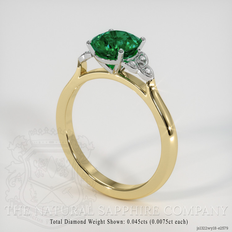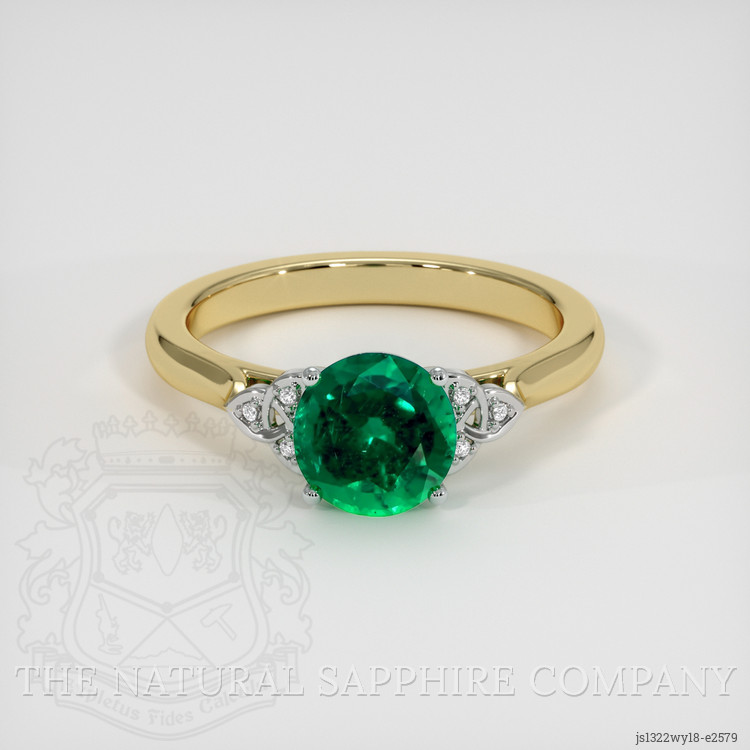 Introducing an exquisite blend of meticulous craftsmanship and natural beauty, this elegant ring from The Natural Emerald Company showcases a stunning centerpiece: a transparent, 1.20 carat round green emerald. This gem is skillfully cut to a precision with dimensions of 6.98 x 6.91 x 4.83 mm, highlighting a mixed brilliant cut that enhances its inherent luster. The Zambian emerald, renowned for its rich color palette, radiates a vivid color saturation that captures attention and admiration. With a clarity grade of very slightly included, the minor inclusions serve to add life and uniqueness to the gem without detracting from its breathtaking beauty.