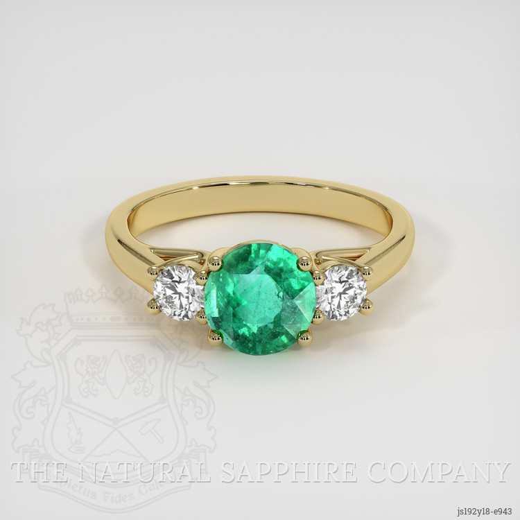At The Natural Emerald Company, we transcend ordinary luxury to offer pieces that become milestones in your heritage. Behold a masterpiece destined to be cherished for lifetimes, our enchanting ring features a captivating 1.20 carat Zambian emerald, unparalleled in its transparent beauty. With dimensions of 6.82 x 6.74 x 4.55 mm, this round-shaped gem is meticulously fashioned into a mixed brilliant cut, exuding a luminous charm that echoes through time. Its medium color saturation and carefully evaluated, slightly included clarity offer the emerald a unique personality that unfolds like a timeless narrative. This exquisite stone is cradled in the luxurious embrace of 18K yellow gold, casting a warm glow that symbolizes enduring elegance.