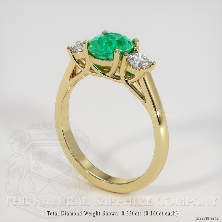 Three Stone Emerald Ring 1.20 Ct., 18K Yellow Gold