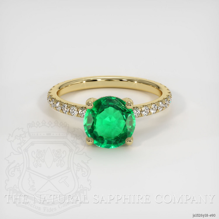 Pave Emerald Ring 1.25 Ct., 18K Yellow Gold