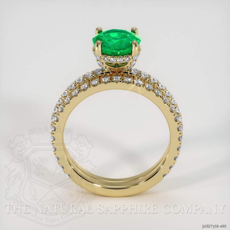 Pave Emerald Ring 1.25 Ct., 18K Yellow Gold