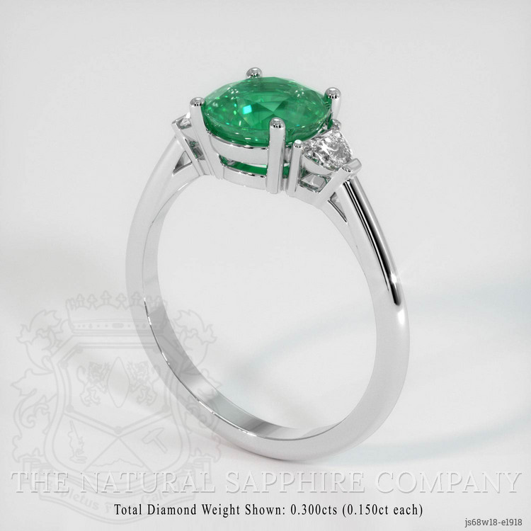 Three Stone Emerald Ring 1.29 Ct., 18K White Gold