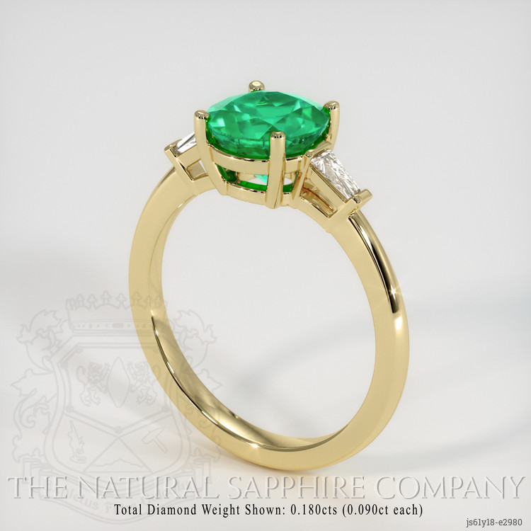 Three Stone Emerald Ring 1.31 Ct., 18K Yellow Gold