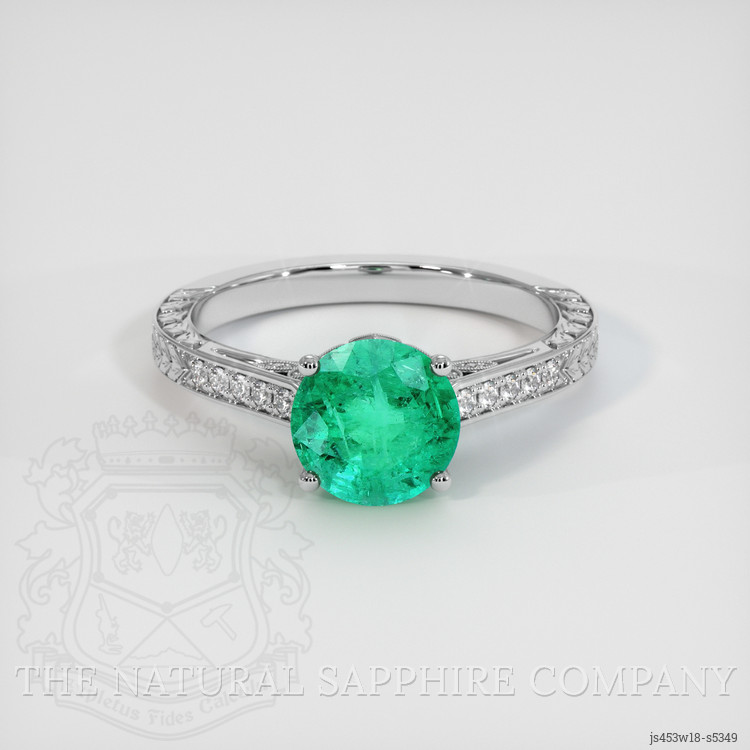 Antique Style Emerald Ring 1.57 Ct., 18K White Gold