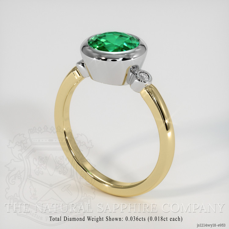 Complementing the verdant gem are delicate whispers of light brought to life by our white round diamonds, each weighing approximately 0.036 carats. These diamonds, holding a VS1 and VS2 clarity grade, shimmer with pristine clarity, while their F color grade adds a remarkable radiance that perfectly harmonizes with the emerald's vibrant hue. Appearing like celestial beings dancing around the fierceness of green, they add a touch of brilliance, symbolizing purity and immaculate love within the design.