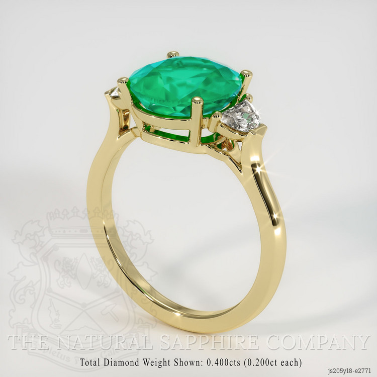 Three Stone Emerald Ring 2.56 Ct., 18K Yellow Gold
