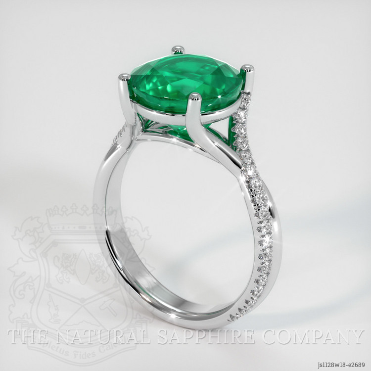 Pave Emerald Ring 3.85 Ct., 18K White Gold