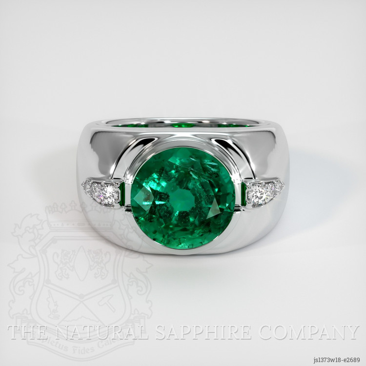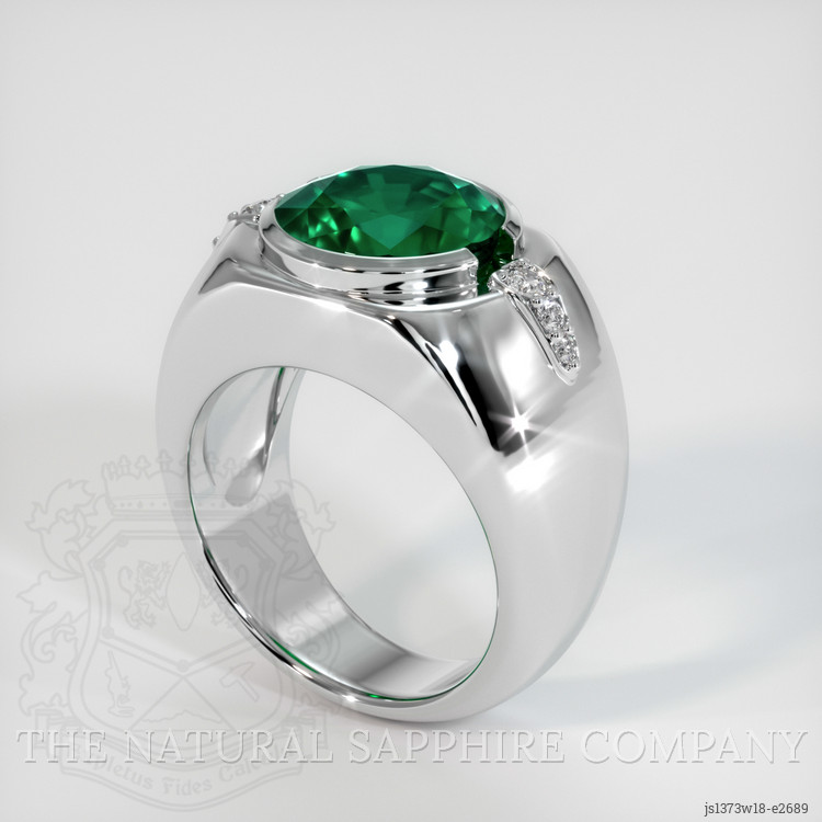 Men's Emerald Ring 3.85 Ct., 18K White Gold