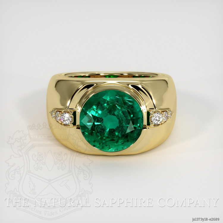Introducing a masterpiece of extraordinary elegance and timeless allure from The Natural Emerald Company, this exquisite men’s ring represents the pinnacle of gemstone craftsmanship. At the heart of our design shines a 3.85-carat transparent green emerald, sourced directly from the storied mines of Zambia. With dimensions of 10.31 x 10.13 x 6.82 mm, this round-shaped gem is meticulously crafted with a mixed brilliant cut to enhance its natural luminescence and breathtaking beauty. Unlike many gemstones available in the market, this emerald boasts an intense color saturation and a clarity grade of very slightly included, ensuring an eye-catching brilliance that rivals any competitor. Its excellent polish and standard enhancement further set this gemstone apart, offering a truly remarkable addition to any distinguished collection.