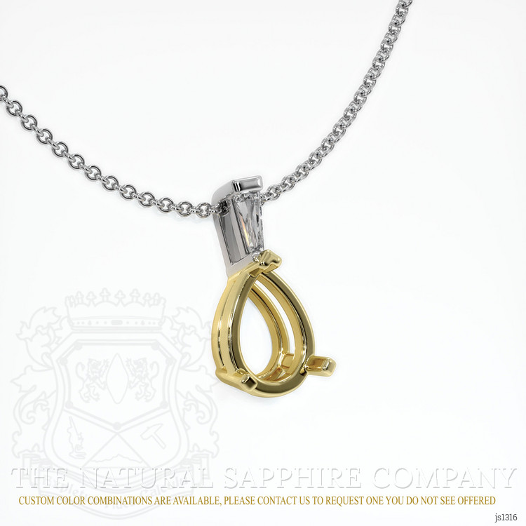 This custom made pendant setting features the accent stones style, where smaller gemstones are set around the center stone, enhancing its beauty and adding extra sparkle to the design. Choose your treasure as a sapphire, ruby, emerald, or a beloved gemstone, and select the metal that will cradle it from a palette of 14K rose gold, 14K white gold, 18K white gold, 14K yellow gold, 18K yellow gold, Platinum 950, 14K yellow and white, or 18K yellow and white. The graceful teardrop silhouette of the setting invites the eye inward, while tapered baguette diamonds set on the sides draw a linear whisper of light that leads the gaze to the heart of the stone. Imagine the warmth of rose gold catching the blush of a ruby, or the cool brilliance of white gold making a sapphire appear like a shard of the evening sky, the accent stones style wrapping the center like a chorus around a soloist, every small gem a note that lifts the whole melody.