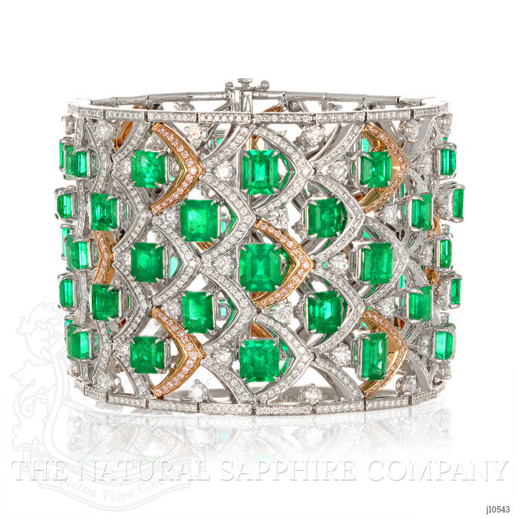 27.81 Ct.Tw. Emerald Natural Diamond Pave Bracelet, 18K White & Rose