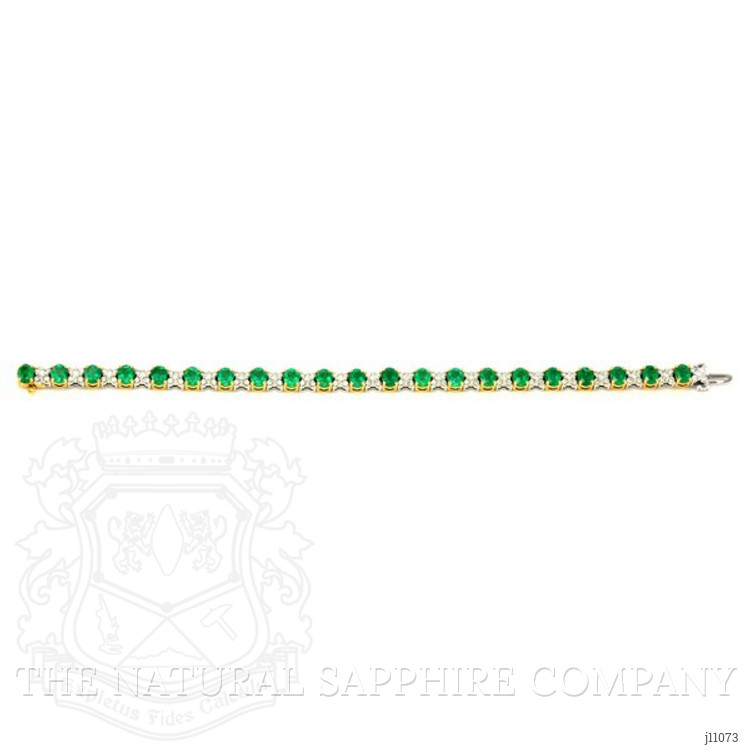 The vivid green stones clasp the light with a playful elegance as though teasing the sun and moon into a harmonious duet. These gems, resplendent with an inner fire, weave together with diamonds that shimmer like distant galaxies, casting reflections that dance with every graceful movement. It is a portrayal of life, rich and vivid, enfolding the heart in a tapestry of love's vibrant hues. Each delicate link, forged in enduring 18K gold, ensures that the promise of beauty is never broken, even through the tender trials of daily life.