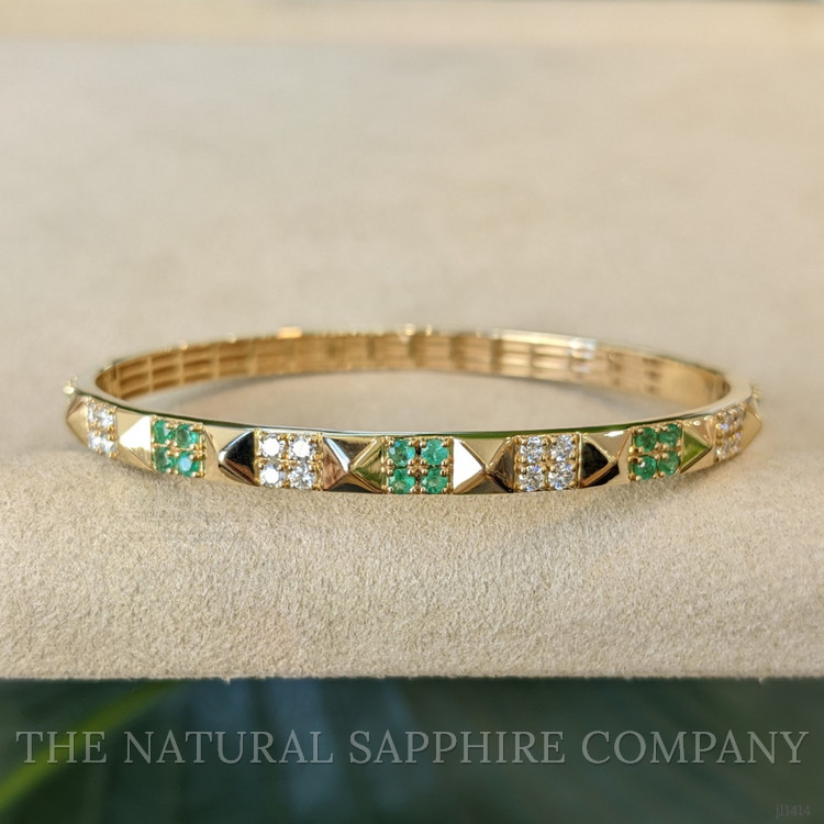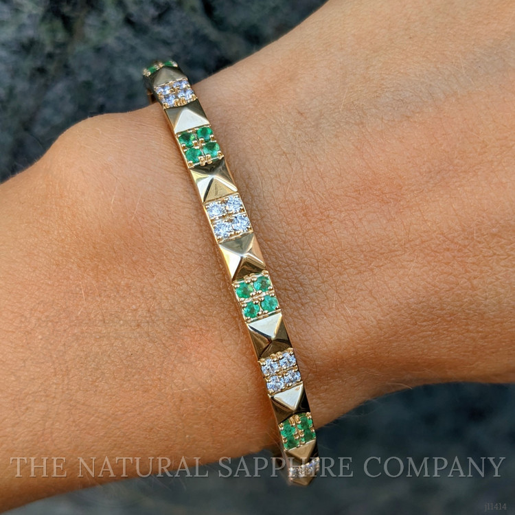 Envision this: sparkling diamonds, as timeless as love itself, mingle with the lush, verdant brilliance of emeralds. Together, they form a constellation of radiance, set against a backdrop of 14K yellow gold. Each stone, chosen for its purity and luster, tells a tale of ethical commitment. Sourced with respect for our planet, these gems shimmer with an awareness of their origin, bringing you close to an unspoiled world, untouched by time.