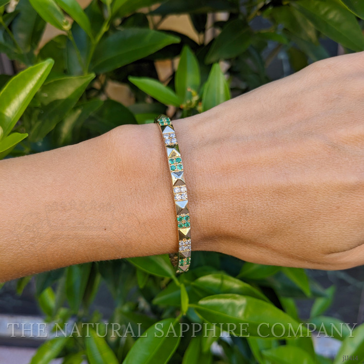 0.56 Ct.Tw. Emerald Natural Diamond Pave Bracelet, 14K Yellow Gold