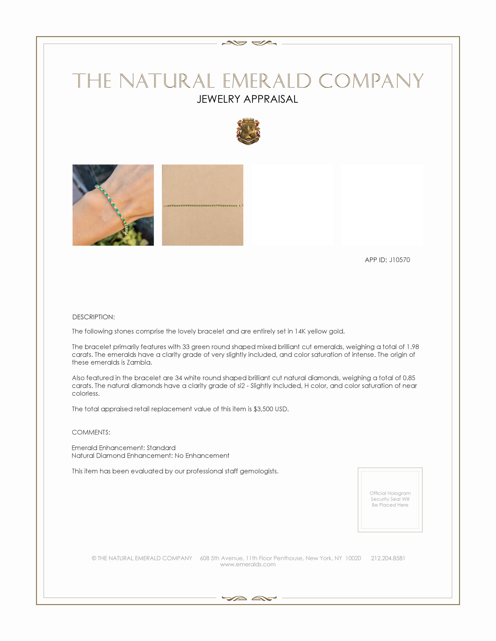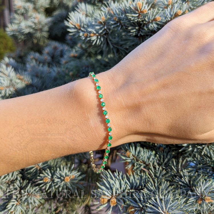 1.98 Ct.Tw. Emerald Natural Diamond Tennis/Line Bracelet, 14K Yellow Gold