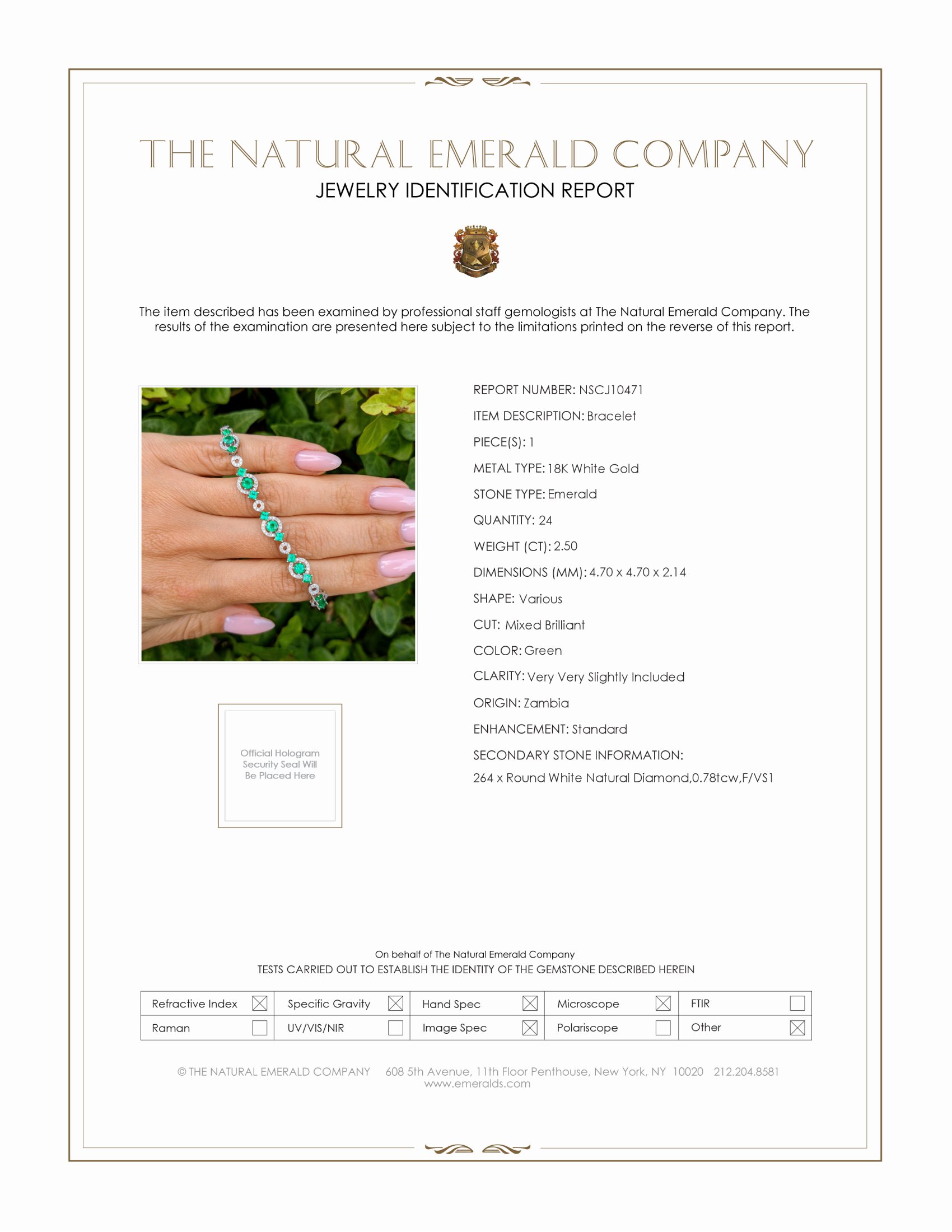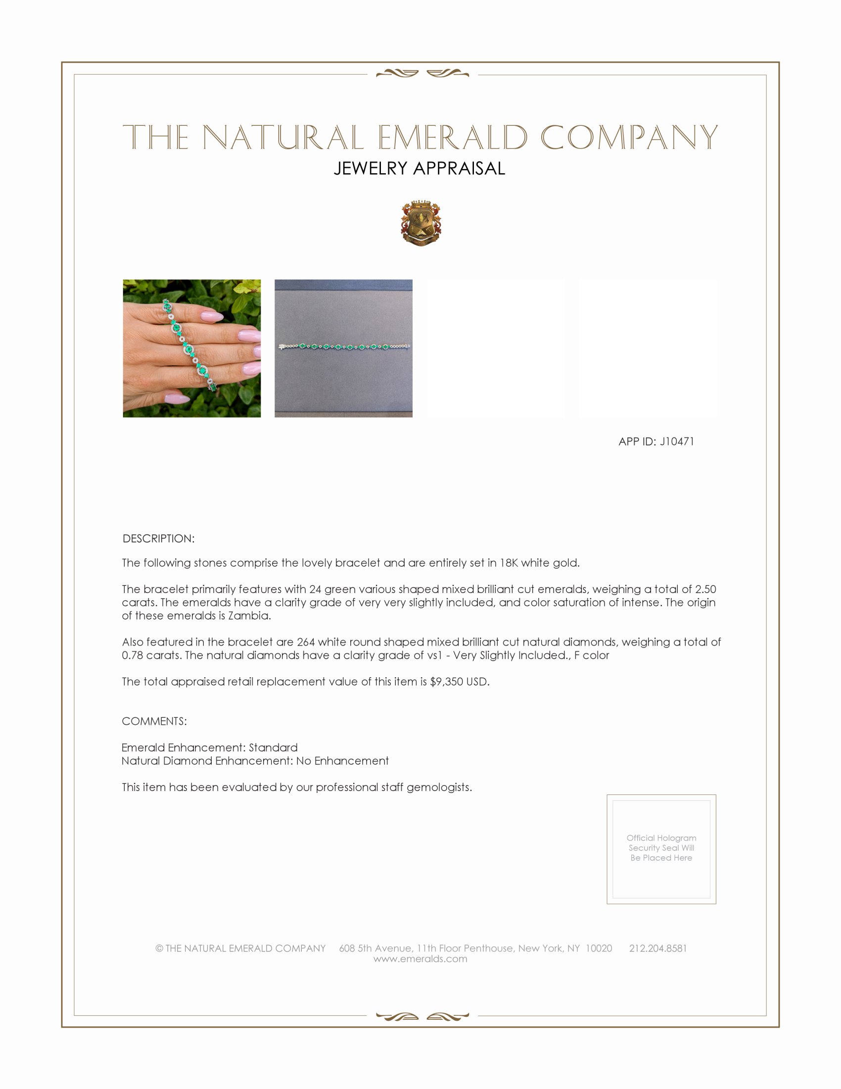 2.50 Ct.Tw. Emerald Natural Diamond Pave Bracelet, 18K White Gold