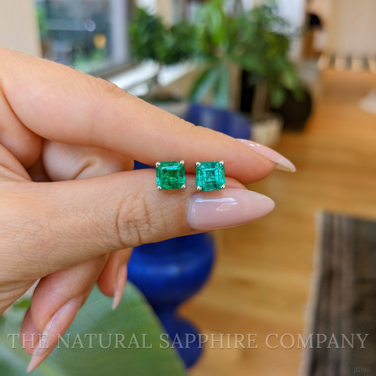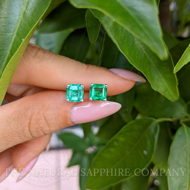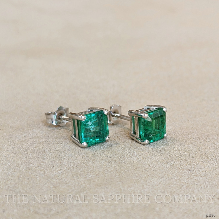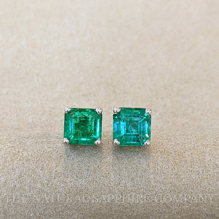 2.60 Ct.Tw. Emerald Studs Earrings, 14K White Gold