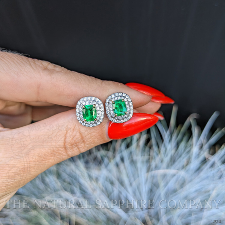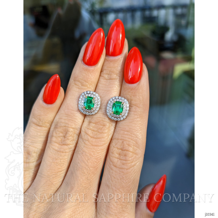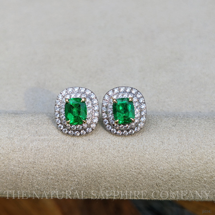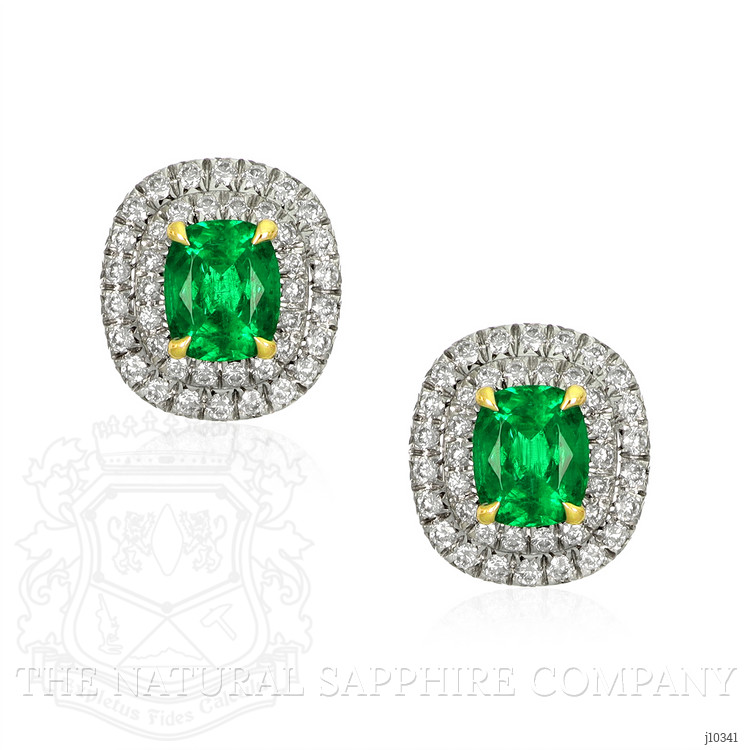 These intricately designed earrings are the epitome of fine craftsmanship and sophisticated style. Set entirely in 18K white gold and 18K yellow gold, these earrings present a harmonious blend of luxury and elegance. The dual tone of gold highlights each element and adds a striking contrast that enhances the visual appeal.The primary material employed in these earrings is 18K white gold, known for its impressive strength and dazzling finish. This makes it an excellent choice for setting gemstones, as it securely holds the intricate settings while offering a timeless aesthetic. The 18K white gold provides a bright and reflective quality that complements the radiant green gemstones perfectly.In addition to white gold, 18K yellow gold is used in these earrings. This gold enhances the intricate detailing around the gemstones and ensures that they stand out. Yellow gold is durable and retains its color over time, making it a practical and enduring component of these stunning earrings.The brilliance of the green gemstones is accentuated by the surrounding halo of meticulously arranged diamonds. This halo effect not only amplifies the sparkle but also adds depth and dimension to the overall design. The precision in the placement of each diamond is a testament to superior craftsmanship, ensuring that light is captured from various angles, thus maximizing the scintillation effect.Functionality and comfort have not been compromised in these earrings. The back fittings are designed to provide a secure and comfortable fit for extended wear. The clasp and post are crafted to withstand regular use while maintaining the earrings' structural integrity and aesthetic charm.Overall, these intricately designed earrings are a result of exceptional craftsmanship combined with the highest quality materials. The 18K white and yellow gold settings provide a luxurious foundation that highlights the elegance of the gemstones and diamonds. These earrings make a statement of sophistication and are designed to meet the high-quality expectations of informed and discerning buyers. Their timeless design ensures that they will remain a cherished piece in any fine jewelry collection.