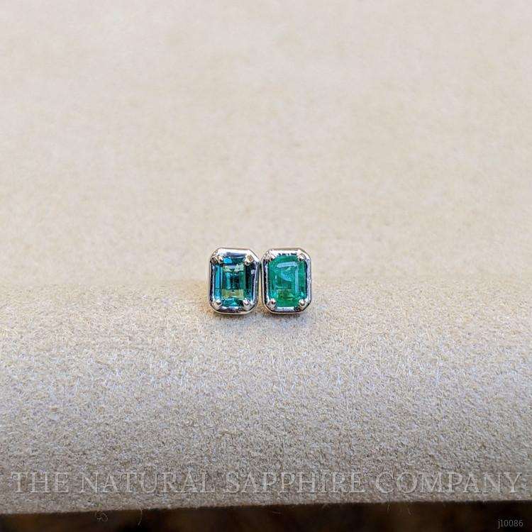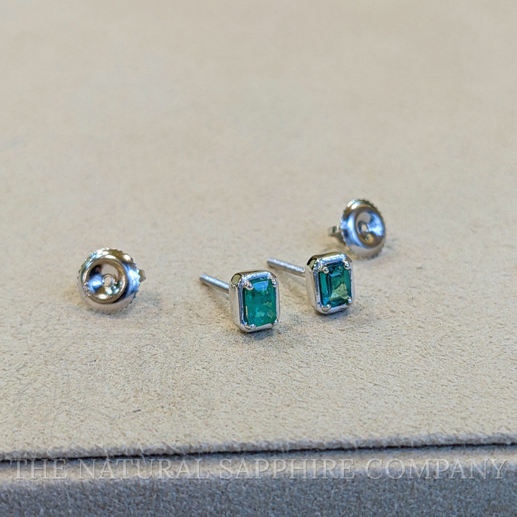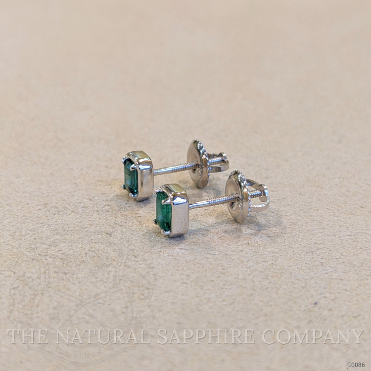 The emeralds, with a total carat weight of 0.40, measure 4.00mm in length, 2.90mm in width, and 2.30mm in height. Their emerald cut not only highlights the gemstone's classic beauty but also enhances its natural brilliance and depth of color. The medium-intense green hue of these emeralds is captivating, providing a stunning visual contrast against the sleek white gold setting.