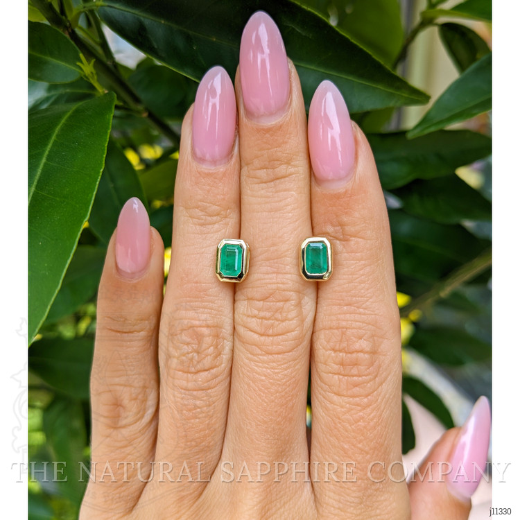 These delicate studs are crafted entirely in 14K yellow gold, offering a level of substance and longevity that gold plated alternatives cannot match. The rich green emerald cut stones sit in a precise bezel setting, which protects the stone edges far better than exposed prongs, and keeps everyday wear secure and comfortable. Compared to sterling silver settings that require frequent polishing to avoid tarnish, 14K yellow gold maintains its warm glow with minimal care, and compared to lower karat gold pieces, these earrings balance durability and value with the reassuring weight of genuine gold. The sharp, octagonal silhouette and the saturated green hue make a clean modern statement, while the classic cut reads as timeless, so these earrings outshine many mass produced options that favor either trendiness with cheap materials, or heavy vintage looks that lack wearability.