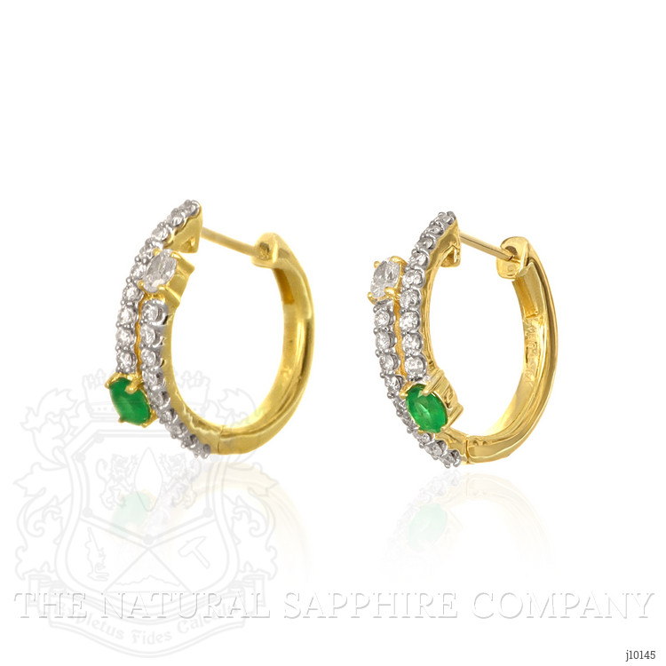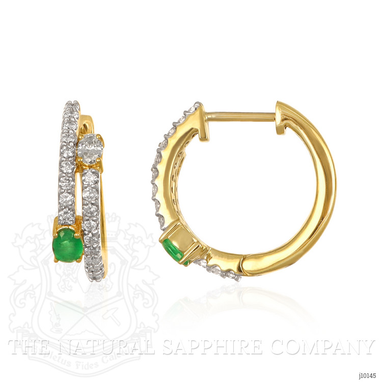 0.30 Ct.Tw. Emerald Natural Diamond Hoops Earrings, 14K Yellow Gold