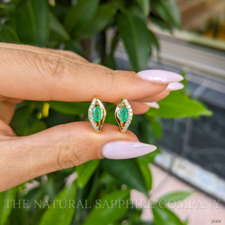 Central to this design are the captivating green gemstones which exude a vivid allure, setting a distinctive tone that appeals to those who appreciate both classical and contemporary aesthetics. The gemstones are embraced by a delicate arrangement of sparkling accents that line the curves of the earrings, providing a dazzling display of light. This thoughtful design captures the artful play between minimalist elegance and intricate detail, ensuring that the earrings are both a statement of style and a testament to fine craftsmanship. With a graceful curvature that gently hugs the ear, these earrings offer comfort without compromising on style, making them ideal for both day-to-day wear and special occasions.