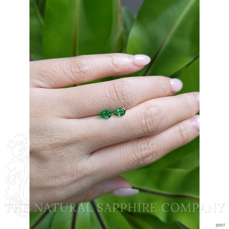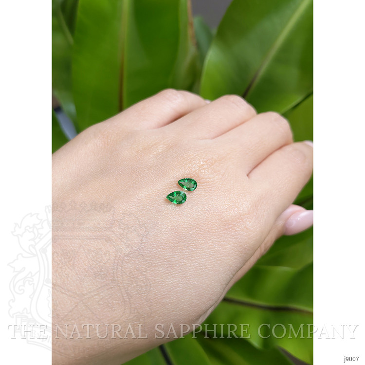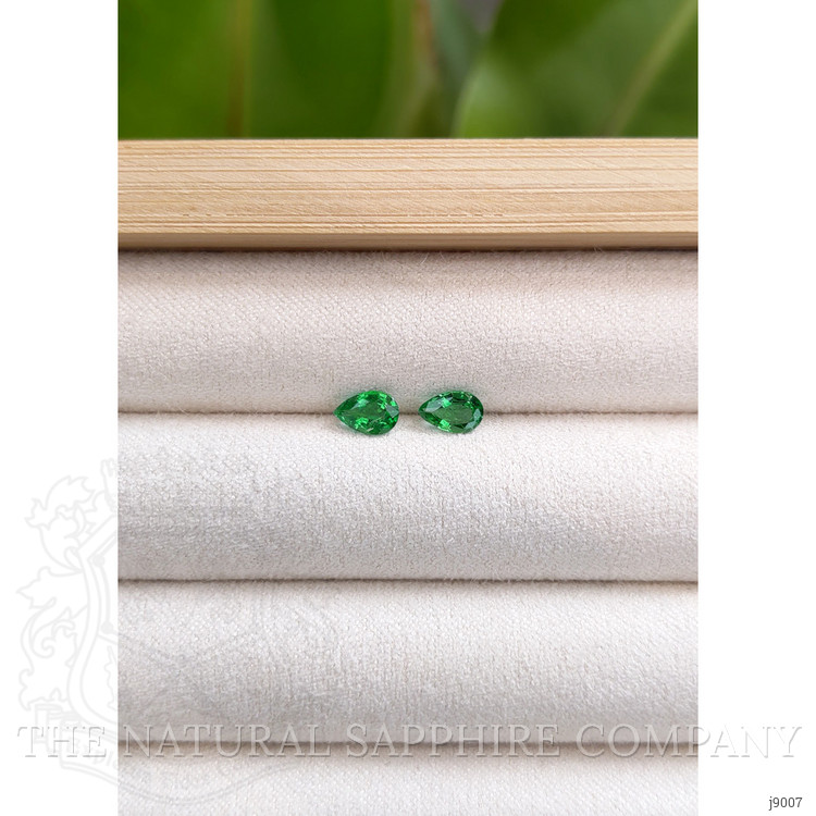 In the heart of Zambia's verdant landscapes, where the earth hums with stories untold and the air is alive with a sense of ancient mystique, a journey begins. It is deep within this vibrant setting that veins of rich green emerge from the ground, whispering secrets of time and transformation. This is where our exquisite pair of Emeralds first saw the light, born from the earth’s embrace, unto the hands of skilled miners who recognize not just the stone, but its promise of elegance and wonder. The Natural Emerald Company honors this origin, cherishing each gem's natural beauty before setting it on a path of creation and renewal. The Emeralds, with their vivacious hue and impeccable transparency, shouldered a careful crafting process designed to enhance their innate splendor. Each stone was cut to reveal a stunning pear shape, accentuating not only its size but capturing the dance of light within its depths. With dimensions of 6.00 x 4.00 x 2.50 mm and a brilliant cut, the Emeralds were evaluated with great care, achieving a clarity grade of very slightly included, a nod to their remarkable quality. Their color is intense, connecting the wearer to the vibrant heart of the natural world. An excellent polish ensures that these gems gleam with a lively fire, capturing admiration from every angle.