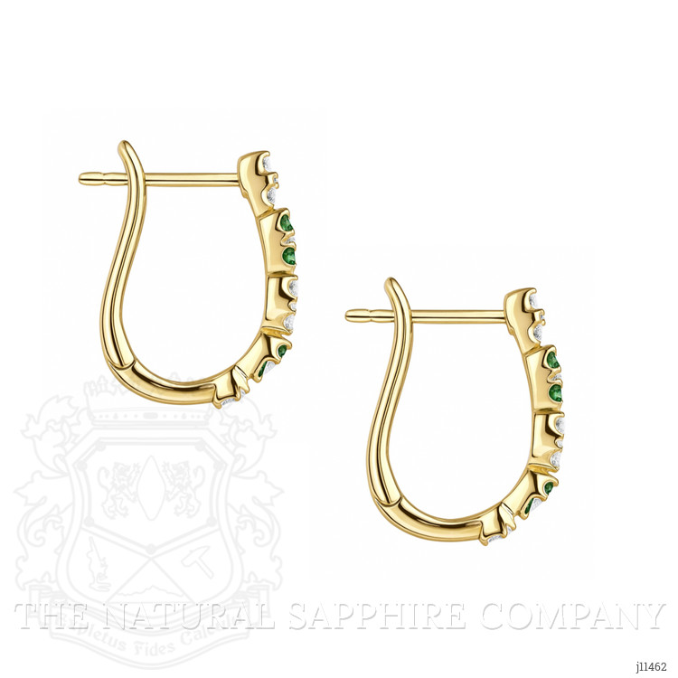0.10 Ct.Tw. Emerald Natural Diamond Hoops Earrings, 14K Yellow Gold