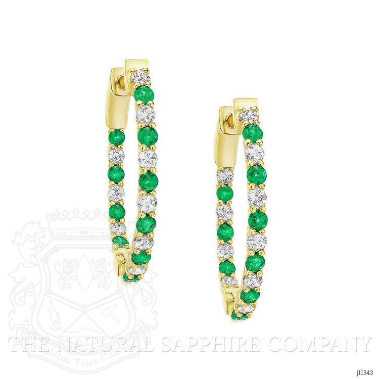 0.37 Ct.Tw. Emerald Natural Diamond Hoops Earrings, 14K Yellow Gold
