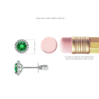 To further elevate the sophistication of these earrings, they are adorned with a halo of dazzling Natural Diamonds. There are 32 white, round-shaped, brilliant-cut diamonds, with a total carat weight of 0.12. Their vs2 clarity and F color add a scintillating brightness that enhances the vibrant green of the Emeralds. Each diamond is meticulously placed to create a seamless harmony that signifies both rarity and elegance. This harmonious blend is emblematic of the sophisticated standards upheld by The Natural Emerald Company.