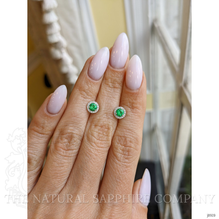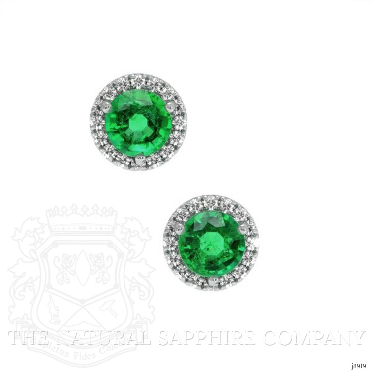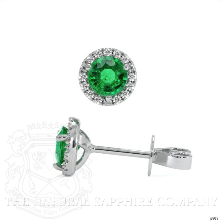 At the heart of these stunning earrings lie two magnificent Emeralds, each a stunning example of nature's artistry. Originating from the lush landscapes of Zambia, these Emeralds boast a total carat weight of 0.40. With their round shape and mixed brilliant cut, they capture and reflect light with a vivid color intensity that draws the eye and captivates the soul. The dimensions of 4.00 x 4.00 x 2.00 mm ensure these gems are perfectly balanced, offering a slightly included clarity that is nonetheless striking when beheld.