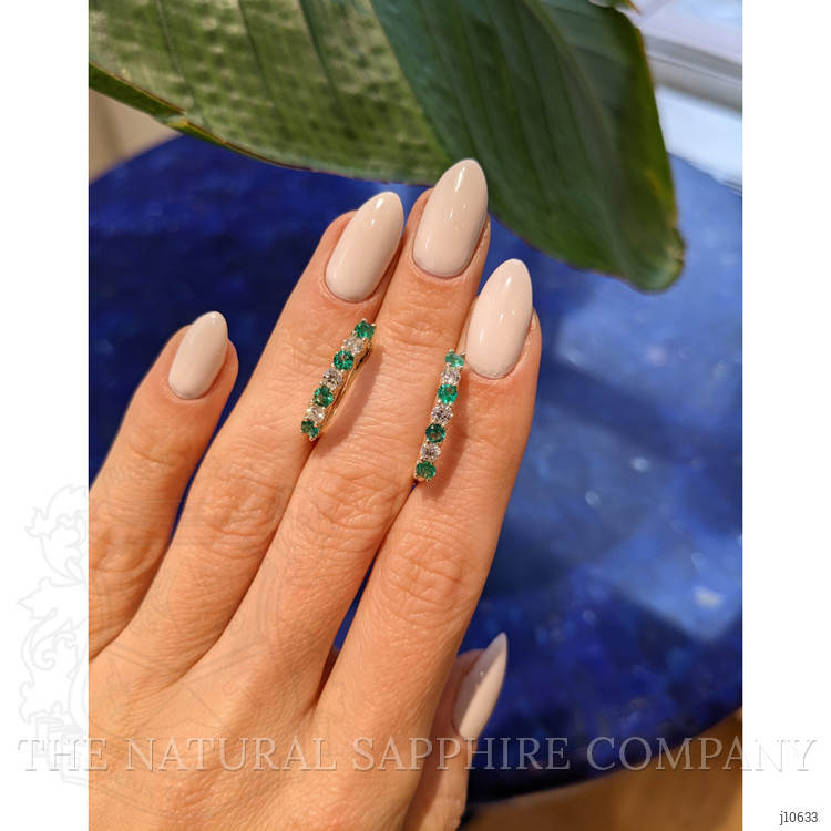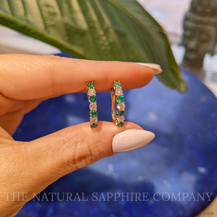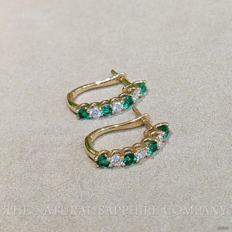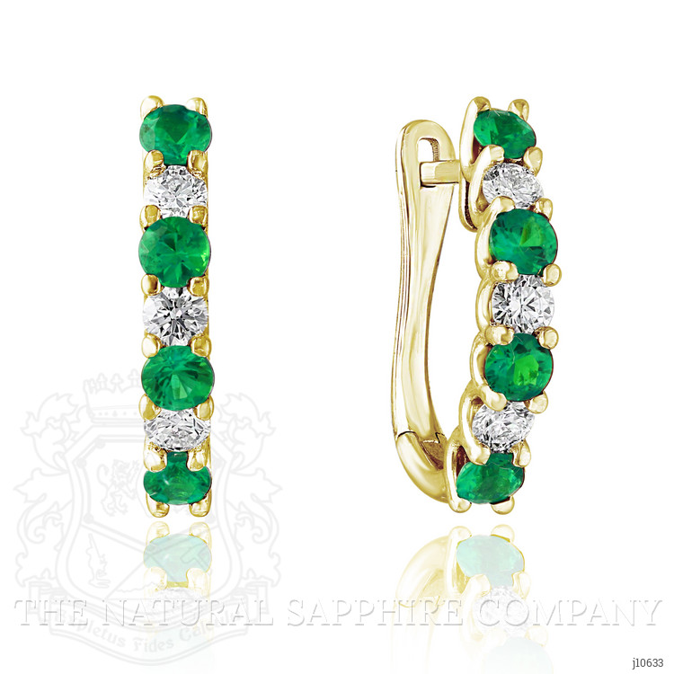 0.60 Ct.Tw. Emerald Natural Diamond Hoops Earrings, 14K Yellow Gold
