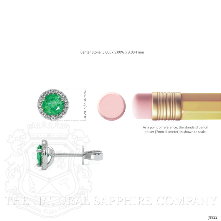 From the heart of Zambia's rich and vibrant earth, a pair of emeralds began their journey. Born from the ancient geological wonders of this land, these exquisite gems have been carefully unearthed for their beauty and rarity. The natural beauty of these round-shaped emeralds, with their dimensions of five by five by three millimeters, carries the essence of their origin. Their medium color intensity showcases a rich green hue that is both captivating and serene. Each emerald, sitting at the very center of these earrings, has been skillfully fashioned into a mixed brilliant cut. This style enhances the stone’s natural luster and allure while retaining its unique personality, slightly included yet embraced as a hallmark of authenticity by The Natural Emerald Company.
