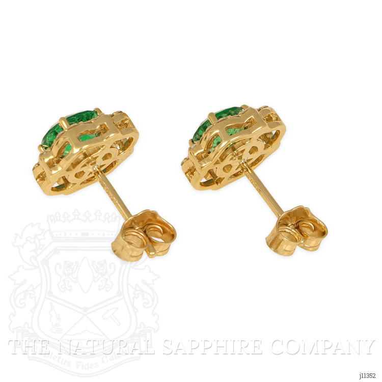 2.77 Ct.Tw. Emerald Natural Diamond Pave Earrings, 18K Yellow Gold