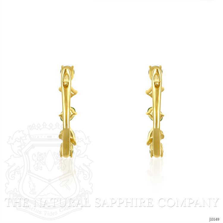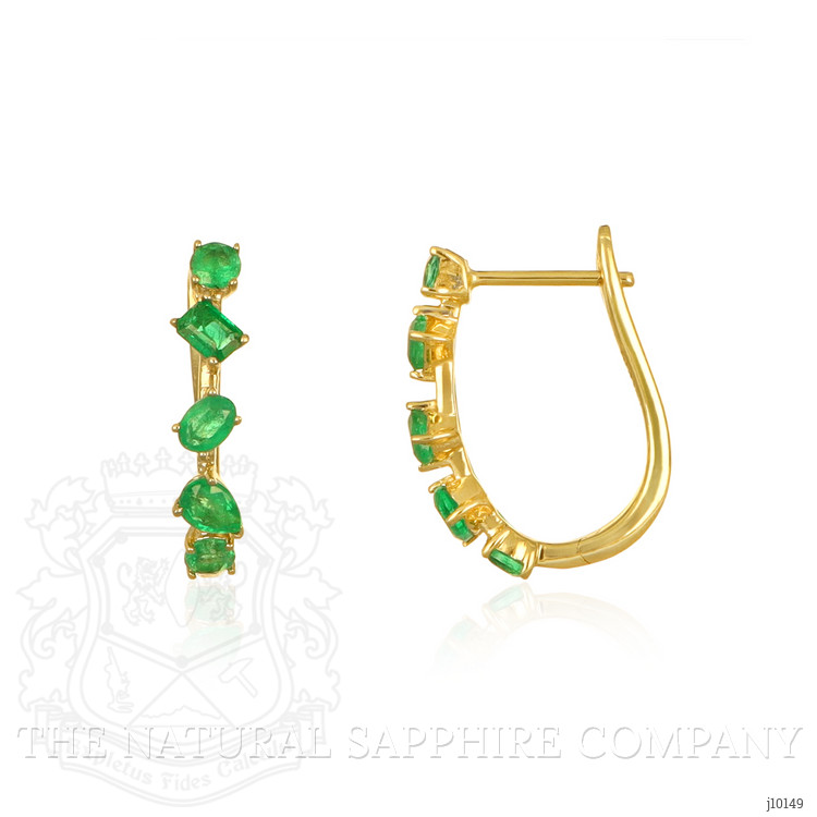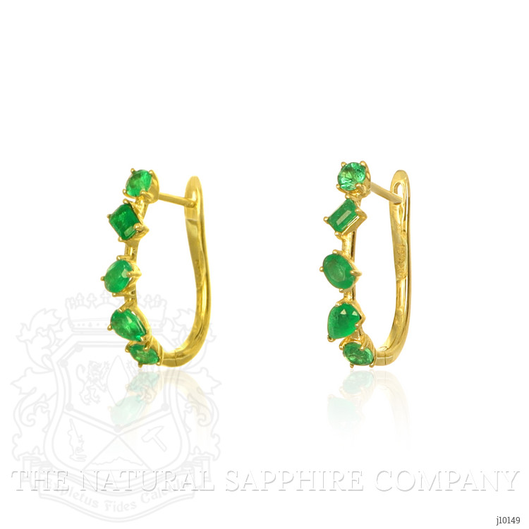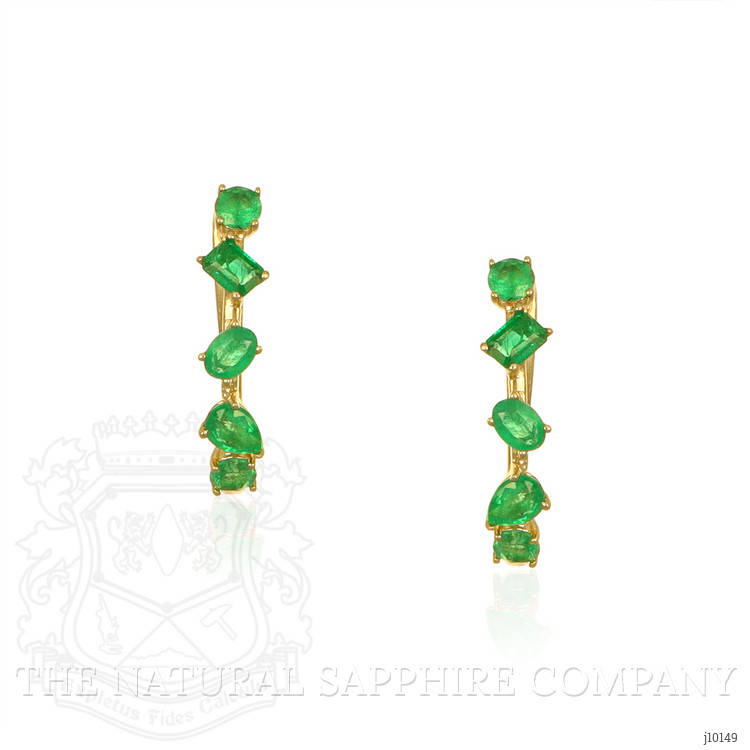 These charming earrings exude elegance and sophistication with their distinctive design. The primary stone detail consists of multiple vibrant green gemstones, likely emeralds, meticulously arranged in an alternating vertical pattern. Each gemstone showcases a faceted cut, enhancing its brilliance and depth of color, lending a captivating sparkle to the earrings. The Jewelry Category these earrings fall into is fine jewelry, suitable for upscale occasions, lending a touch of class and refinement to any ensemble. The Metal Type is luxurious 14K yellow gold, providing a warm and exquisite contrast to the cool tones of the green stones. This timeless metal choice not only adds to the aesthetic appeal but also ensures durability and a high-quality finish.The earrings showcase a classic and timeless Style, with a hint of modernity in the linear arrangement of the stones, appealing to those who appreciate jewelry that makes a statement while remaining sophisticated. The linear design allows the earrings to sway gently, giving off flashes of the rich green hues as they catch the light.Craftsmanship is evident in the careful setting of each stone, ensuring security while allowing maximum exposure to enhance their brilliance. The overall aesthetic appeal of these earrings is one of simple luxury; they are eye-catching without being overpowering, making them an excellent choice for both day-to-day refinement and special occasions.Regarding size, the earrings are of a length that allows them to be noticeable without being uncomfortable or too heavy on the ears. They appear to be designed for pierced ears, with a secure backing to ensure