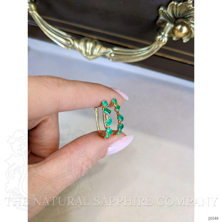 1.07 Ct.Tw. Emerald Hoops Earrings, 14K Yellow Gold