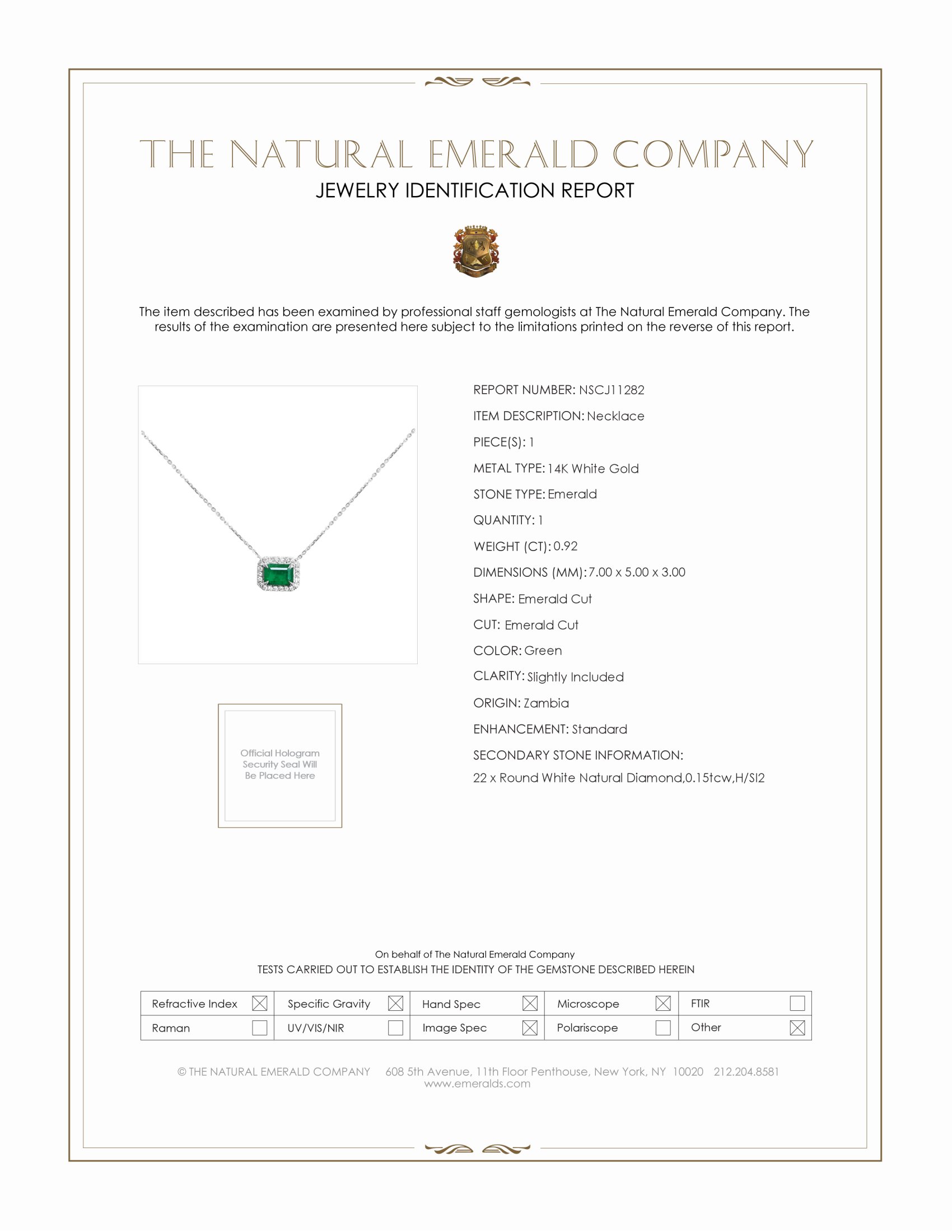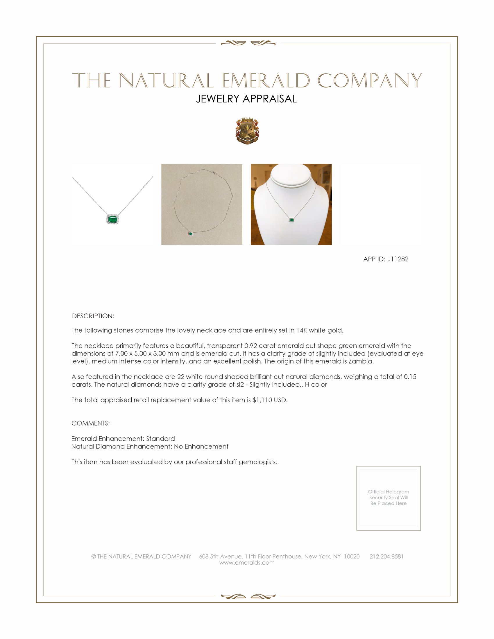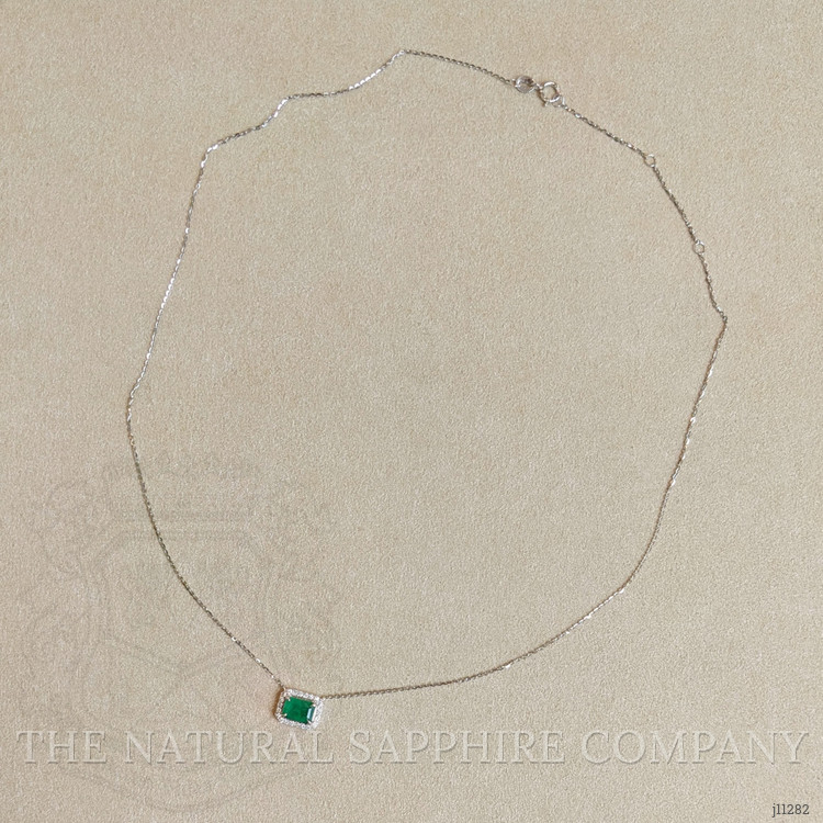 Crafted entirely in 14K white gold, the necklace exudes a sleek modernity while retaining classic sophistication. The white gold setting not only provides a durable yet elegant framework for the gemstones but also accentuates the cooler tones of the emerald and diamonds, creating a harmonious contrast that enhances the overall visual impact. This material choice ensures the necklace's longevity, preserving its beauty for years to come. Each element of the design is expertly wrought, ensuring a seamless integration of form and function, a hallmark of fine jewelry artisanship.