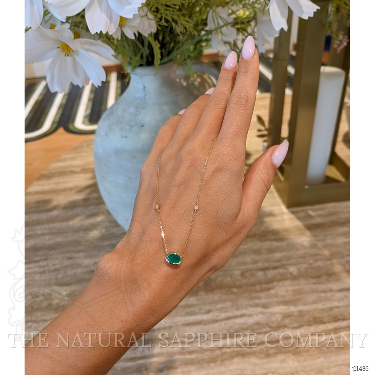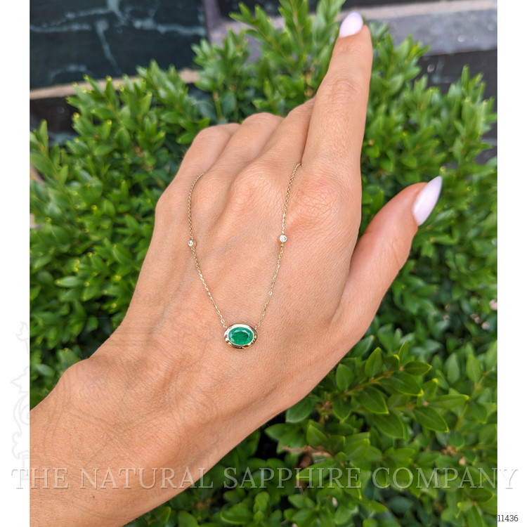 0.69 Ct. Emerald Natural Diamond Bezel Necklace, 14K Yellow Gold