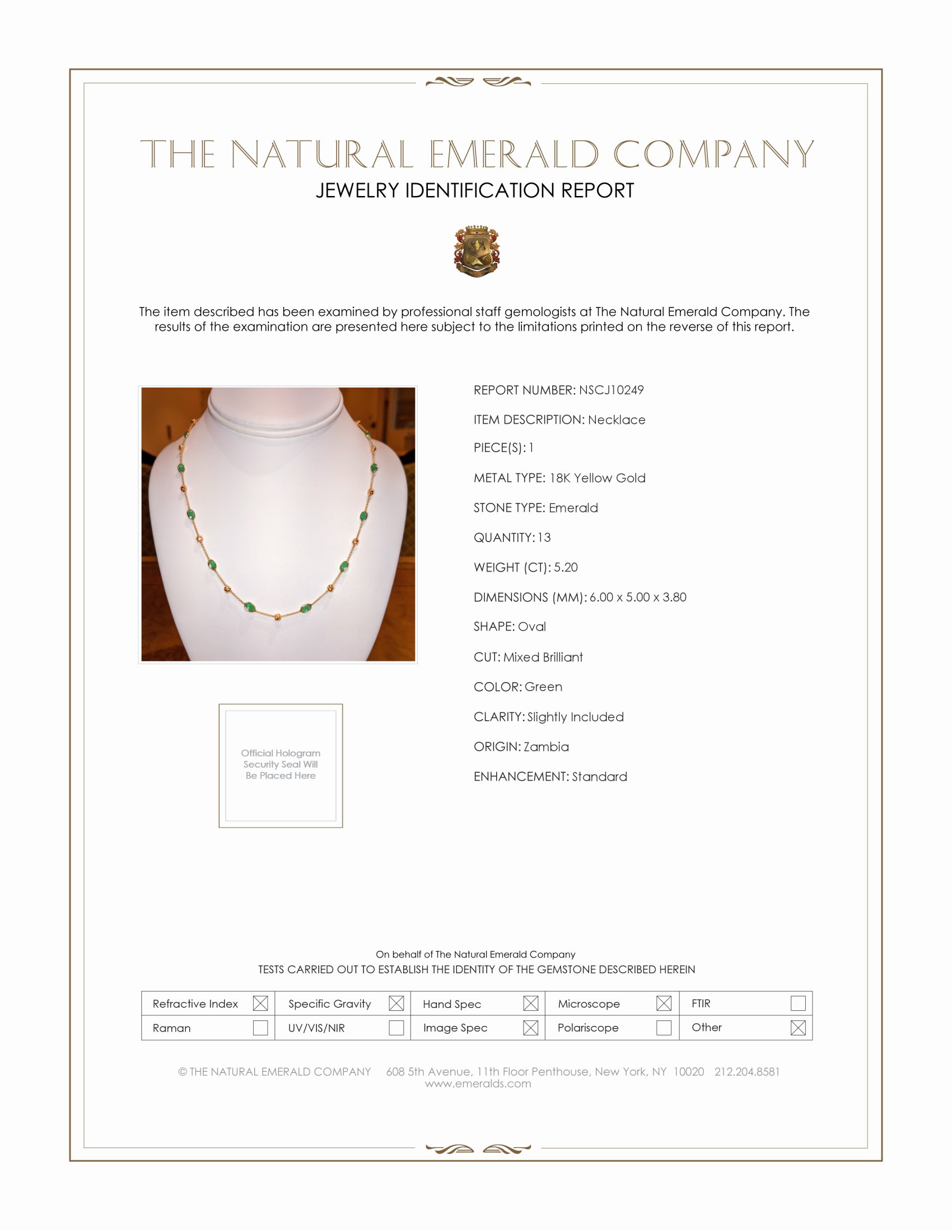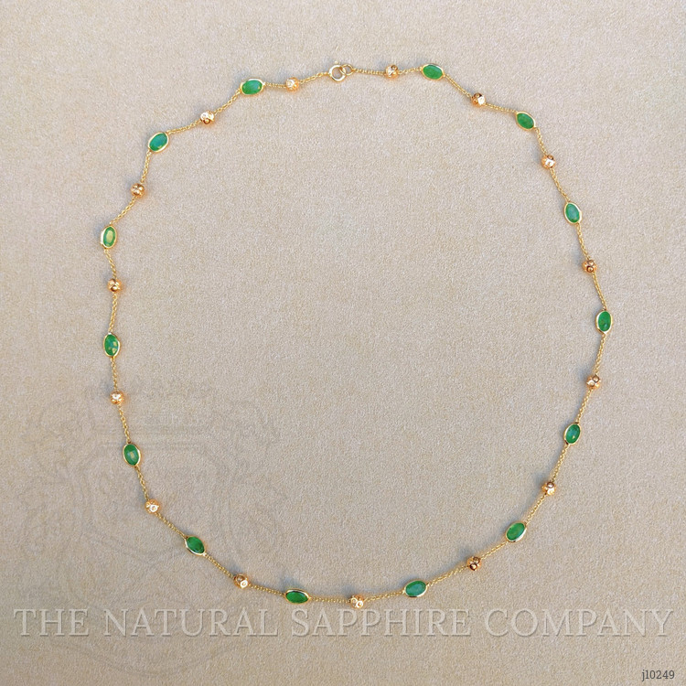 This exquisite necklace is a testament to masterful craftsmanship and timeless elegance. Comprised of high-quality gemstones all set meticulously in 18K yellow gold, this piece exudes sophistication and luxury. The stones, carefully selected, exhibit a remarkable clarity and brilliance. Gemstone grading plays a crucial role in determining their value, with each stone in this necklace reflecting top-tier quality, boasting a vivid color and precise cut, attributes that inherently enhance their desirability among educated buyers. The clarity of the gemstones is particularly noteworthy, as it indicates a minimal presence of internal imperfections or inclusions, allowing maximum light reflection and an unparalleled sparkle.The origins of these gemstones are equally significant, sourced from regions renowned for producing some of the finest stones available. This provenance adds another layer of value, giving the piece an element of rich history and authenticity. Buyers can have confidence in knowing the necklace they are acquiring has been constructed with materials from some of the most prestigious mining areas globally, further cementing its worth and appeal to collectors and connoisseurs alike.Craftsmanship is at the heart of this design, where artisans have devoted meticulous attention to every detail, resulting in a necklace that is as durable as it is beautiful. Each link and stone setting is crafted with precision, ensuring the stones are securely fitted while allowing their inherent beauty to be fully appreciated. The use of 18K yellow gold not only adds to the luxurious feel of the necklace but also ensures longevity and resistance to tarnish, guaranteeing that this piece will be cherished for generations. The style of the necklace, with its symmetrical arrangement of stones, highlights a perfect balance between simplicity and opulence, turning it into a versatile piece suitable for any occasion. With its high gemstone quality, expert craftsmanship, and elegant design, this necklace stands as an investment piece that brings long-term value and joy to its owner.