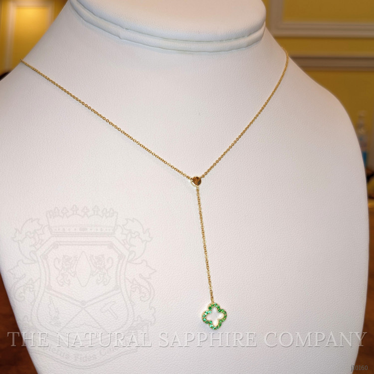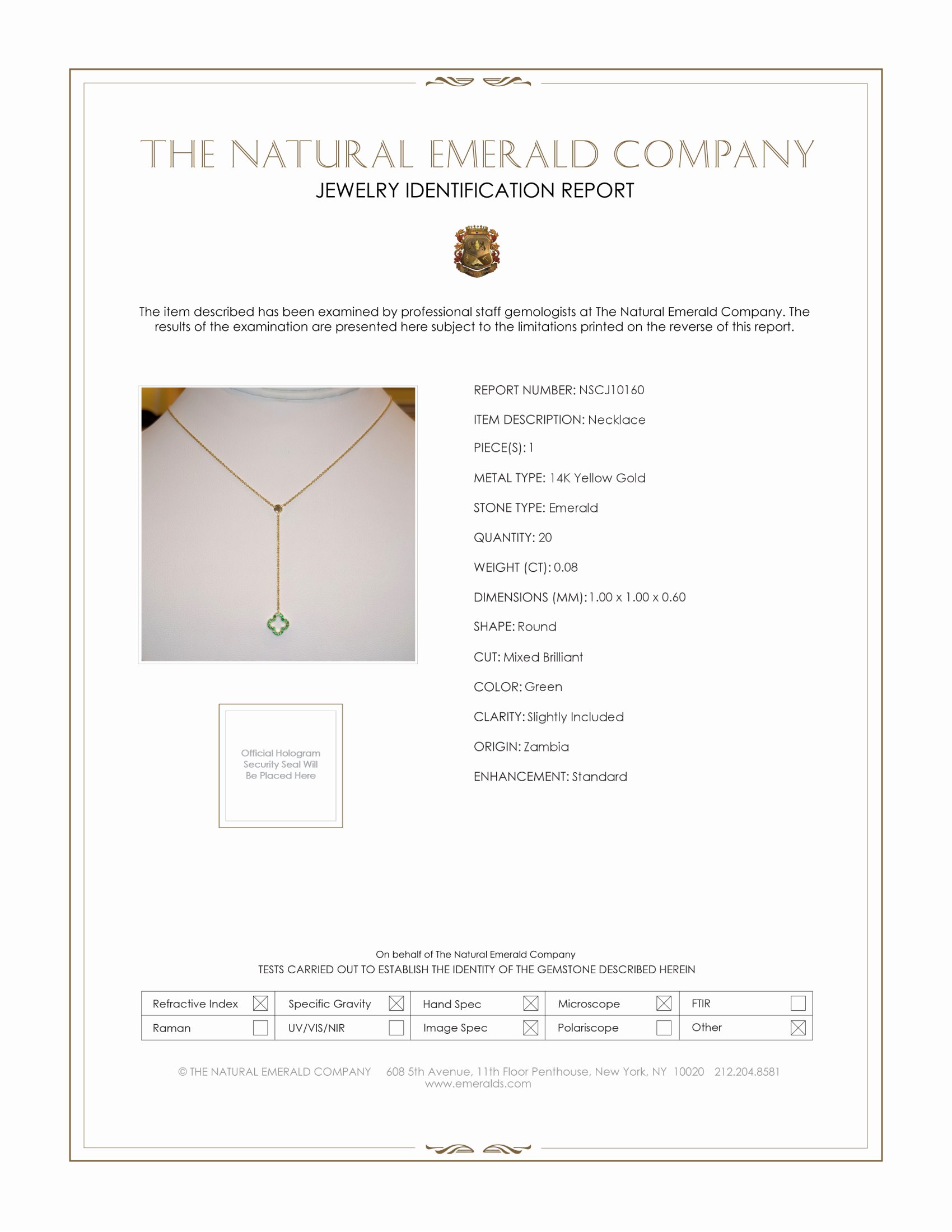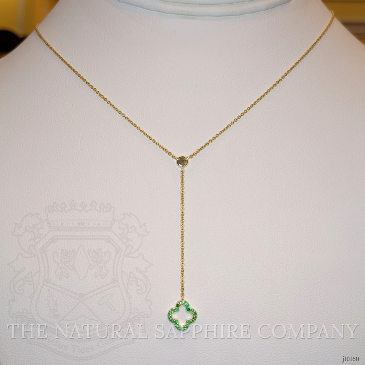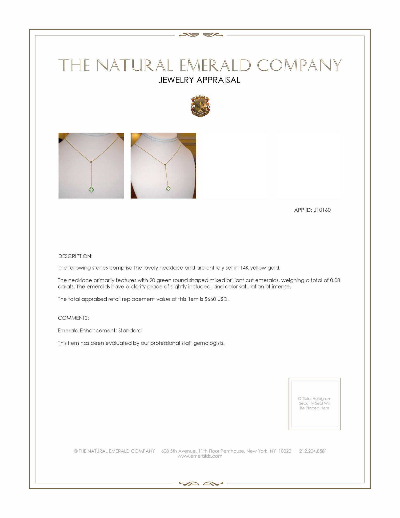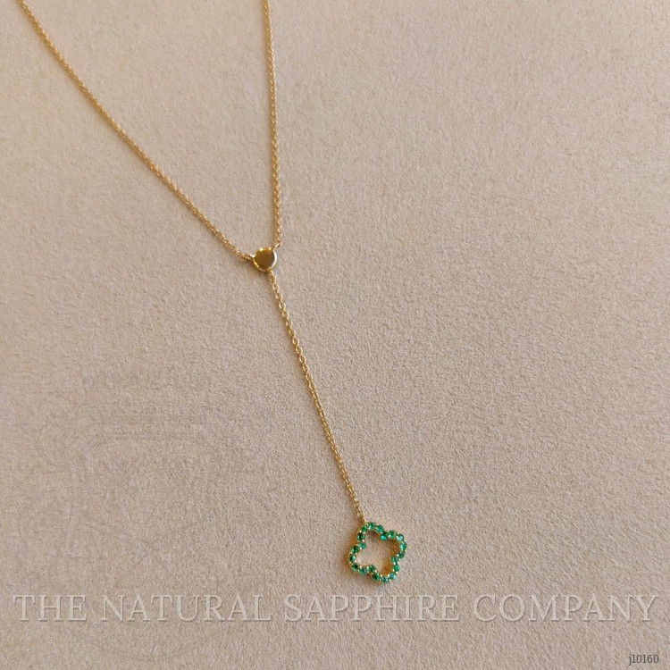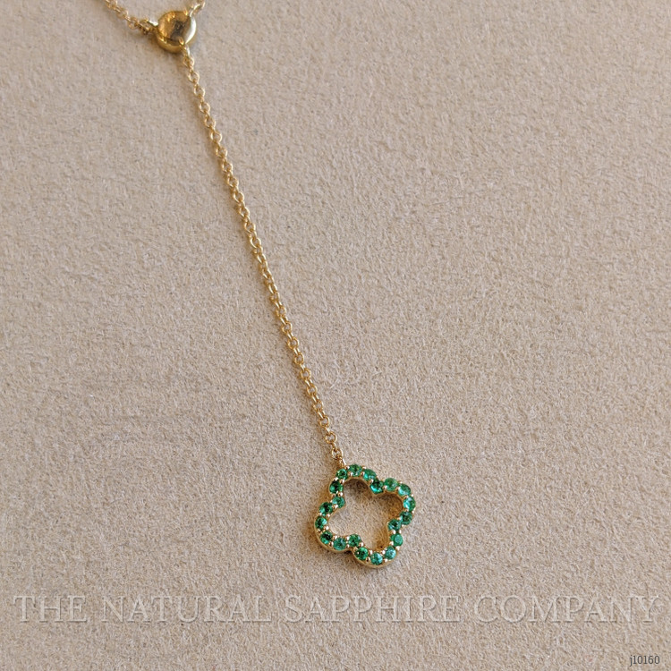 Each emerald on this necklace weighs a total of 0.08 carats and is expertly selected for its slightly included clarity and intense color saturation. The rich green hue of the emeralds offers an exquisite contrast to the warm glow of the yellow gold setting, creating a stunning visual appeal. Designed to grace any occasion with sheer elegance, this necklace is an embodiment of timeless style.