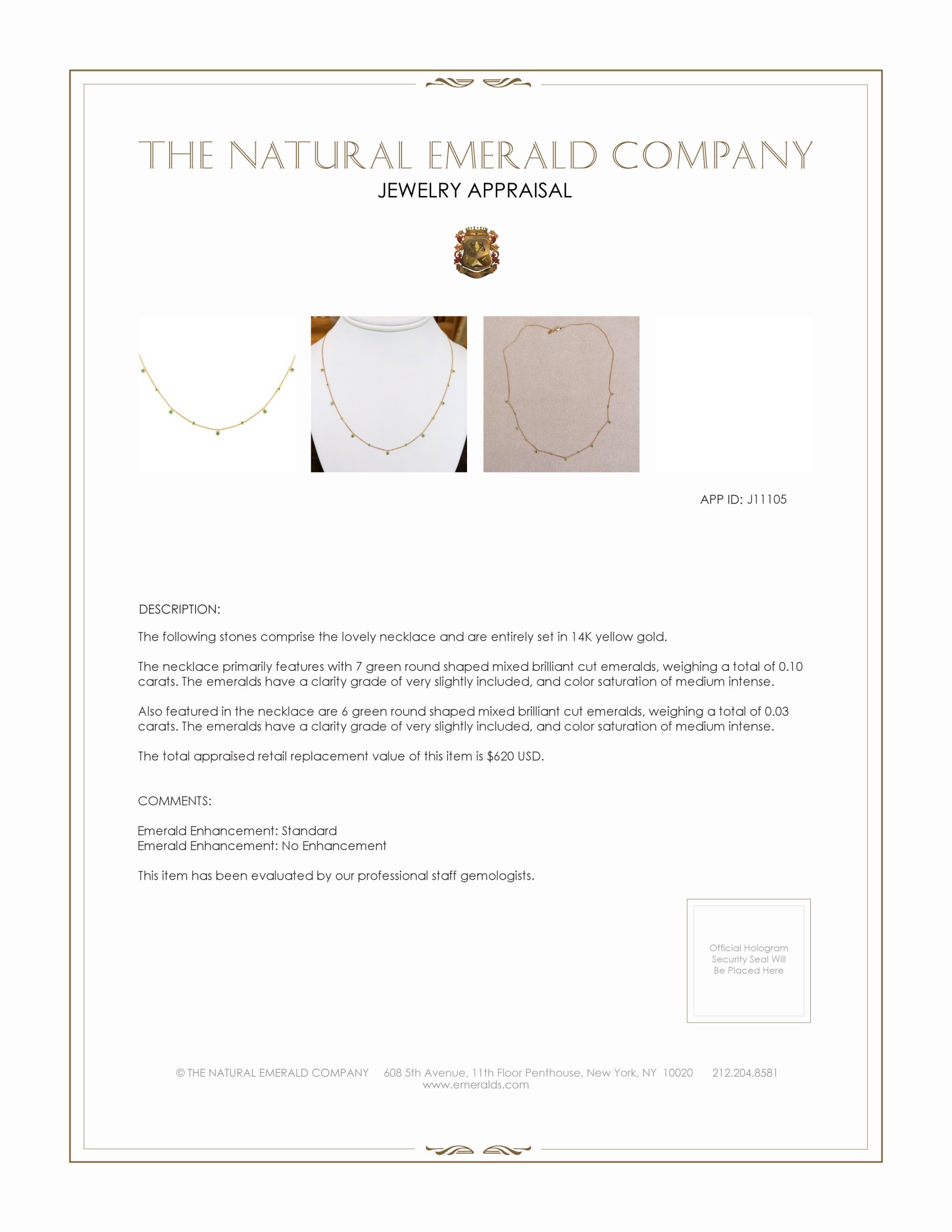 Discover the epitome of elegance with our exclusive emerald necklace, delicately crafted in premium 14K yellow gold. This exquisite piece elevates your everyday wardrobe, transforming any occasion into a treasured memory. Each emerald is hand-selected, ensuring that only those with the deepest green and finest clarity are set into this one-of-a-kind piece. Limited in quantity, owning this necklace is like being part of an elite club, reserved for those who recognize the true artistry in fine jewelry.