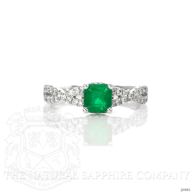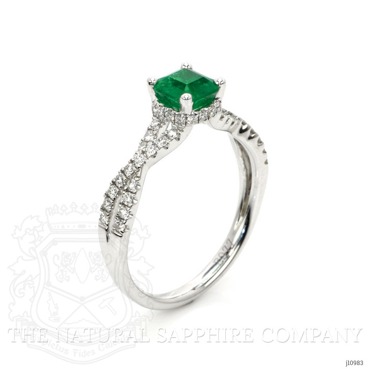 Introducing our exquisitely crafted ring, set entirely in 18K white gold, a piece where the timeless beauty of gemstones is celebrated through masterful craftsmanship. At its heart rests a captivating emerald, known for its vibrant green hue, which symbolizes renewal and growth. This emerald's natural allure requires minimal enhancement, showcasing a fascinating interplay of light and color that captivates the eye without overshadowing the gem's inherent beauty. Its clarity speaks volumes, allowing one to peer into depths brimming with years of geological history. The coloration of this gemstone is a vivid green, striking a perfect balance between saturation and tone. Each facet is expertly cut to enhance the stone's natural brilliance, employing a faceting technique that maximizes the gem's ability to reflect light, thus adding a soft radiance to its impeccable appearance.