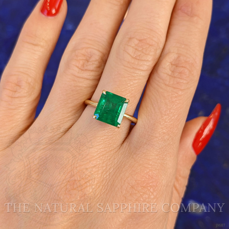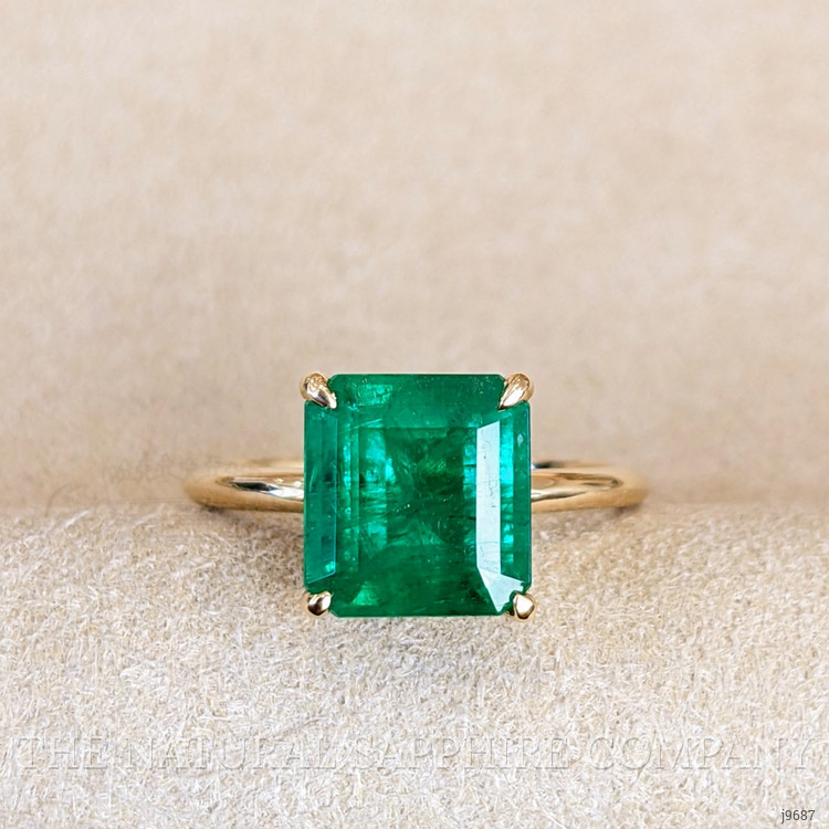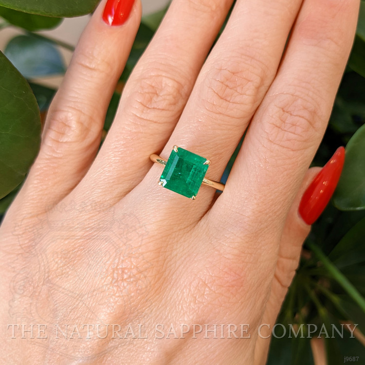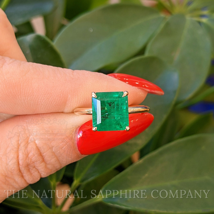 At the heart of the ring lies a stunning emerald-cut gemstone, celebrated for its vivid green hue and exceptional clarity. The cut of the stone maximizes the interplay of light, creating a stunning display of brilliance and color. This exquisite feature is accentuated by the precision setting, ensuring that the gemstone remains secure while being showcased to its fullest potential. The minimalist design places focus on the gemstone, allowing its natural beauty to shine and be admired from every angle.