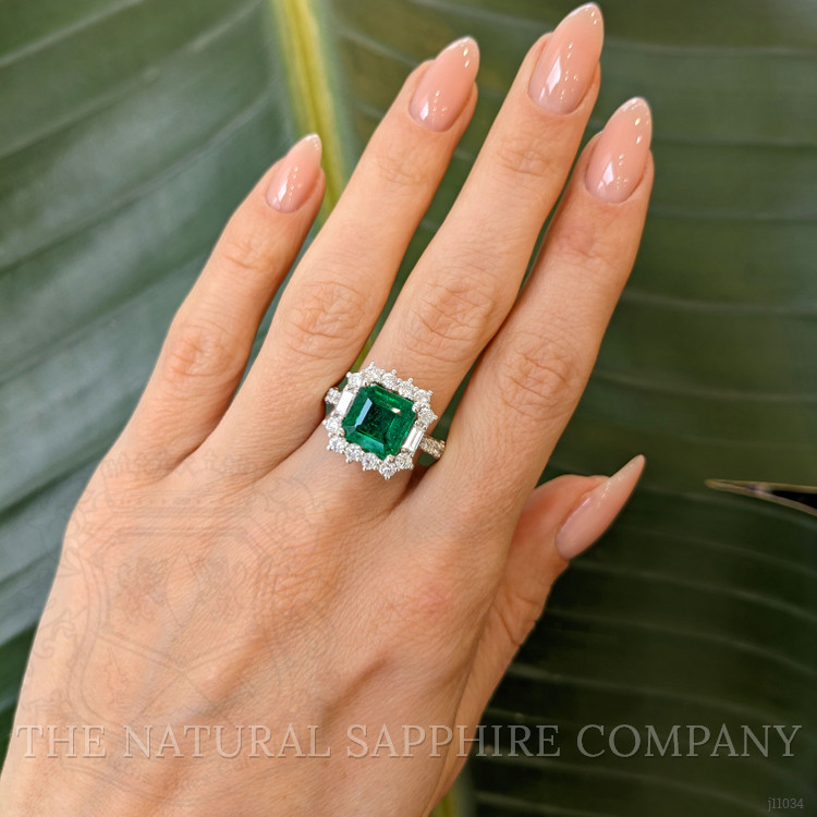 Every gaze into this emerald's depths could bring a sense of clarity and a renewed perspective, making every heartbeat more profound. In gifting or wearing this remarkable ring, you or your loved one invest in a lifelong talisman of love and hope. The 18K white gold band, with its shine and sturdy elegance, ensures that its promise will endure through every experience and every cherished memory. Here, then, is a piece of art, a wearable dream, that will continue to inspire wonder and represent a cherished new beginning in your life story.