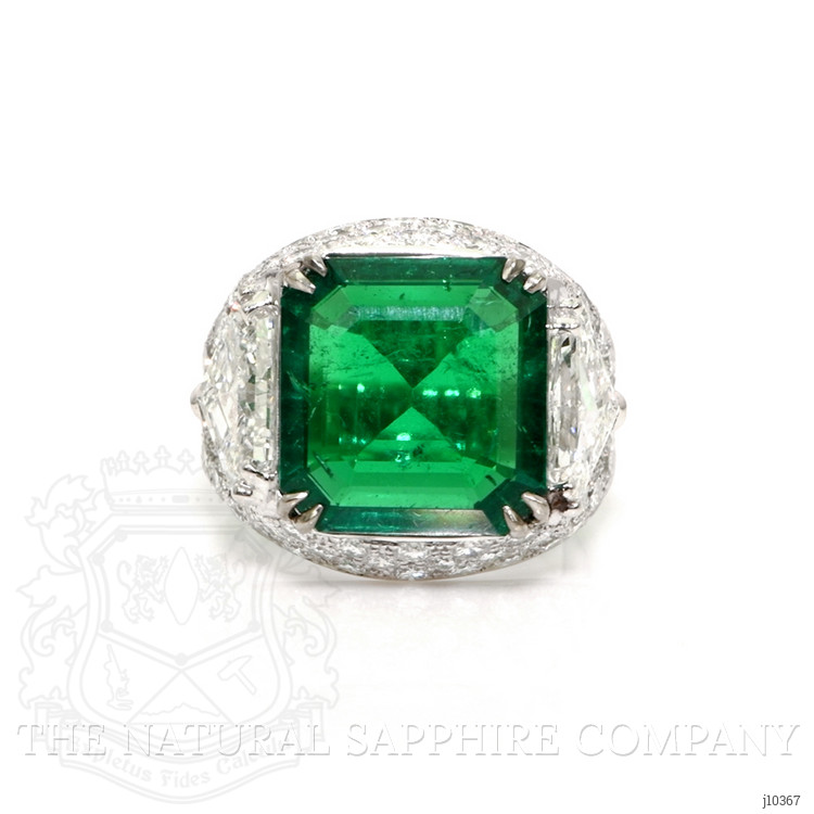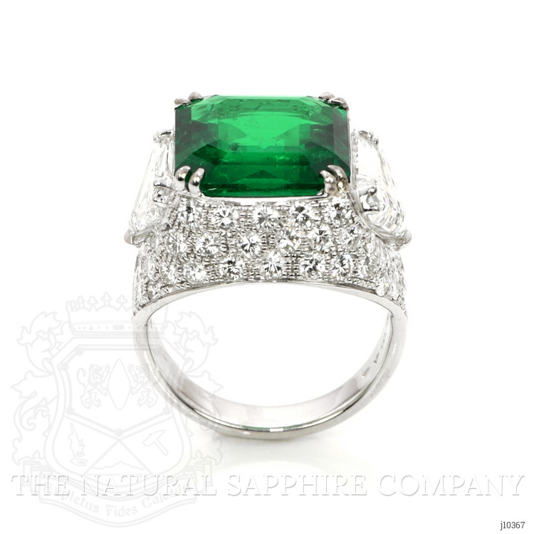 Encircling the emerald are 2 dazzling trillion-shaped diamonds, as if two celestial companions accompany our exquisite emerald on its perpetual journey of grandeur. Supremely refined, these diamonds marry the deep gaze of the emerald with a radiant lift of brilliance. Their artful brilliance adds layers of intrigue and allure each possessing a clarity of vs1, allowing the stones to shine with a flawless clarity that beckons the beholder to linger. These diamonds serve as a transitional whisper, linking the center emerald's conversation of depth, history, and eternity to a chorus of clarity and luminescence.