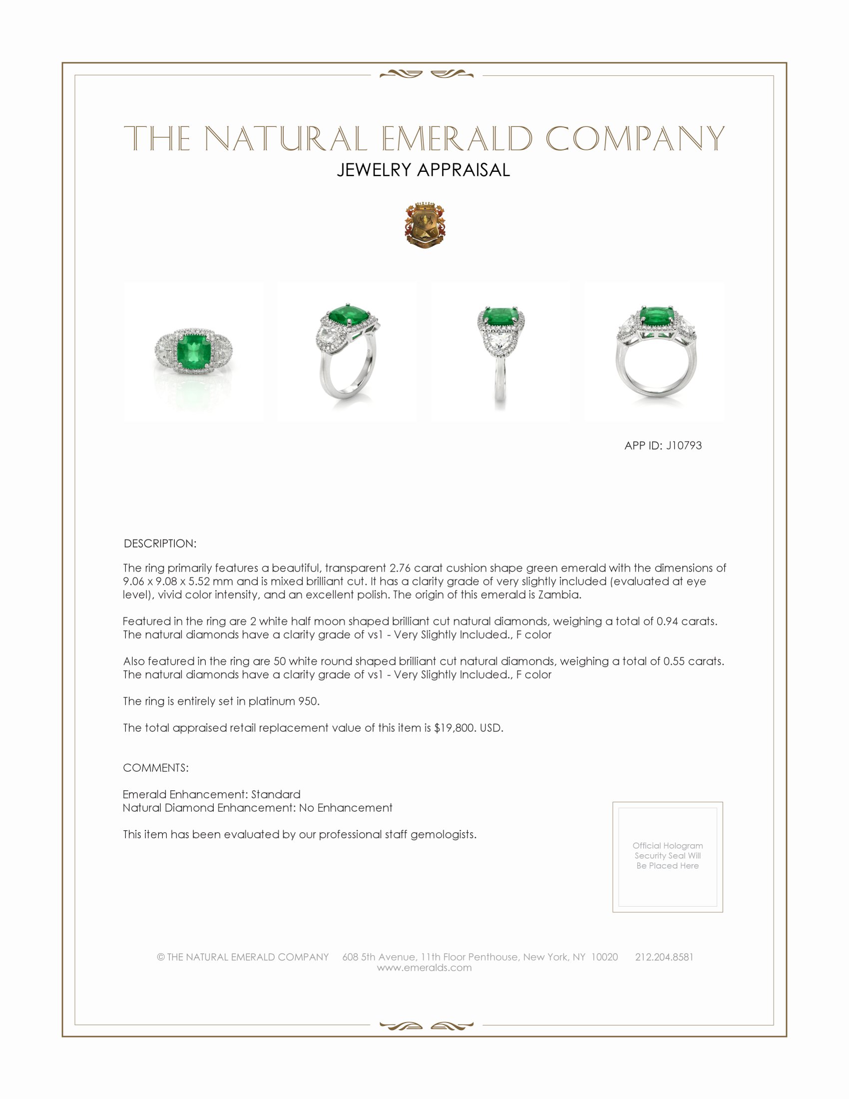 Beyond its aesthetic allure, the ring's technical intricacies present another layer of its allure. The emerald's unique cushion cut allows for optimal light dispersion, providing a captivating sparkle from every angle. The platinum setting gifts the whole structure with unmatched strength while also serving as a beautiful, reflective backdrop that enhances the gemstones’ natural luster. Every detail, from the prongs securing the stones to the seamless band, is executed with technical excellence, ensuring that knowledgeable buyers find this piece irresistible. For those with a discerning eye, this ring represents not only luxury but also the artistry and dedication that goes into creating a timeless piece of jewelry.