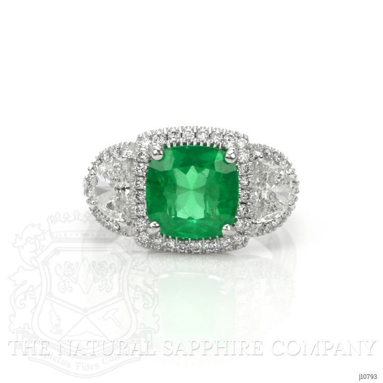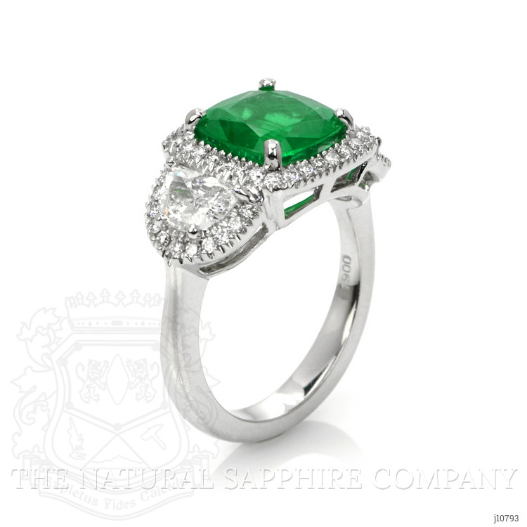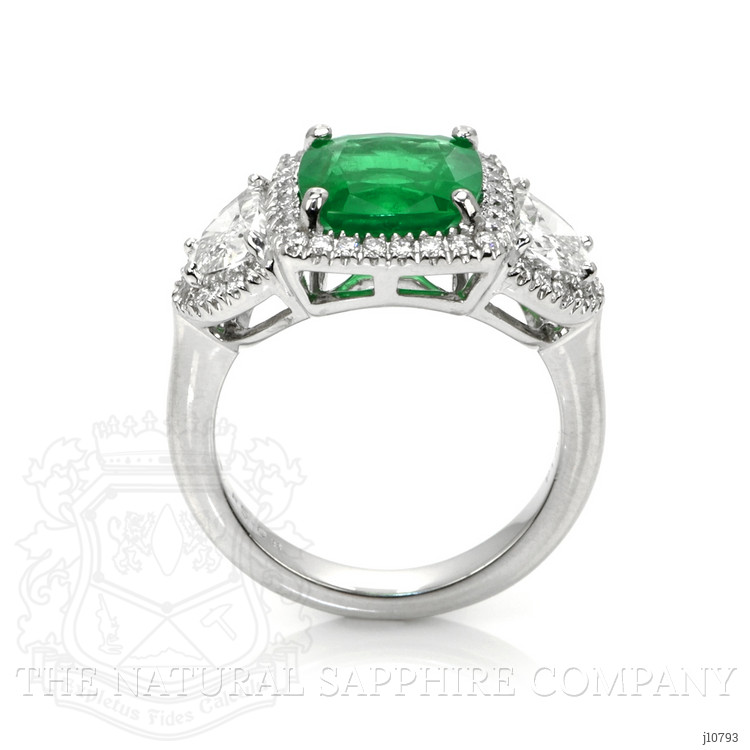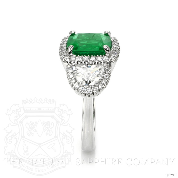2.76 Ct. Emerald Natural Diamond Three Stone Ring, Platinum 950