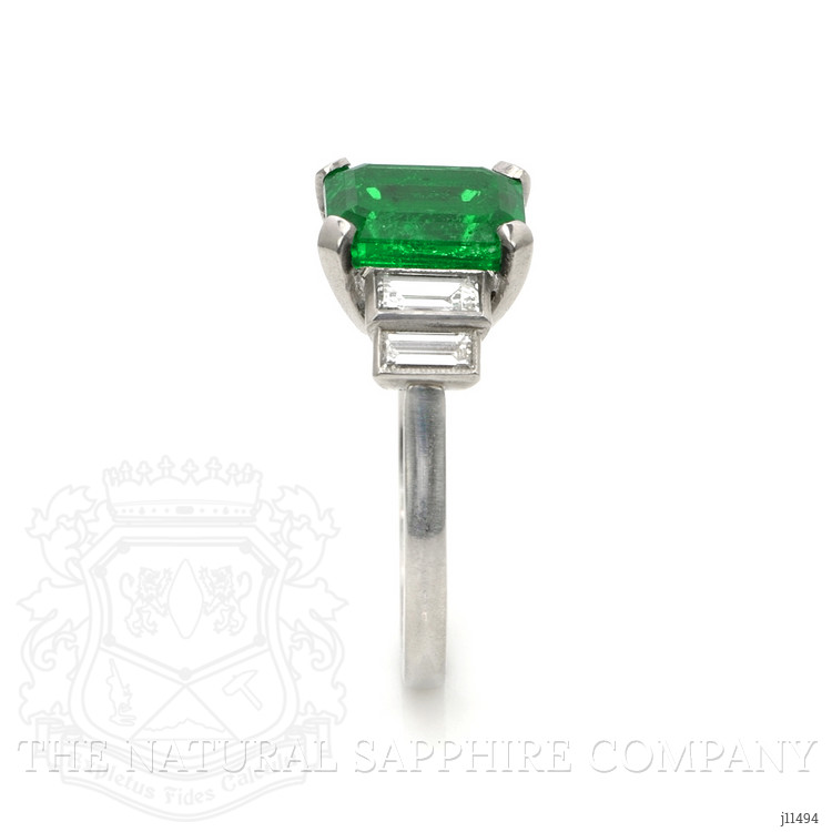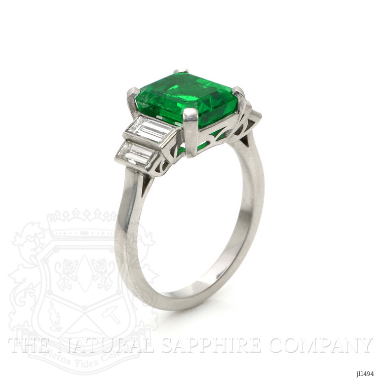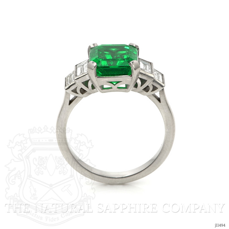 Imagine a moment when the world narrows to two people and a single question, imagine offering something that is unmistakably unique, this ring becomes the emblem of that instant, a compact history of a promise made public and carried privately. The emerald cut is a language of clarity, its long step facets reading like an honest conversation, it suggests transparency and steadfastness rather than flash, it suggests vows kept steadily over years. The vivid green brings to mind renewal and growth, it speaks of shared seasons and the kind of flourishing that comes from steady attention. The baguette diamonds on either side do more than add light, they frame the center as though to say that commitment is supported by thoughtfulness and structure, small but crucial acts that uphold a larger beauty. Worn at the moment of proposal, this ring will pause a life and then continue its narrative, a visible sign that two people chose continuity and care, that they opted for a bond that will be polished and honored rather than neglected. Choosing this ring is an act of refinement, you are not following a trend, you are claiming a lineage of elegance for a future all your own.