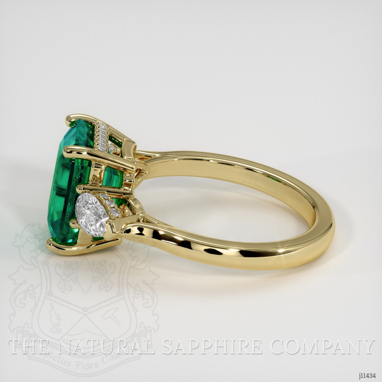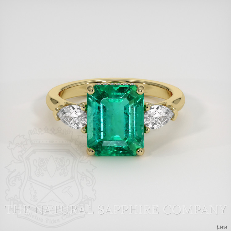 3.29 Ct. Emerald Natural Diamond Three Stone Ring, 18K Yellow Gold